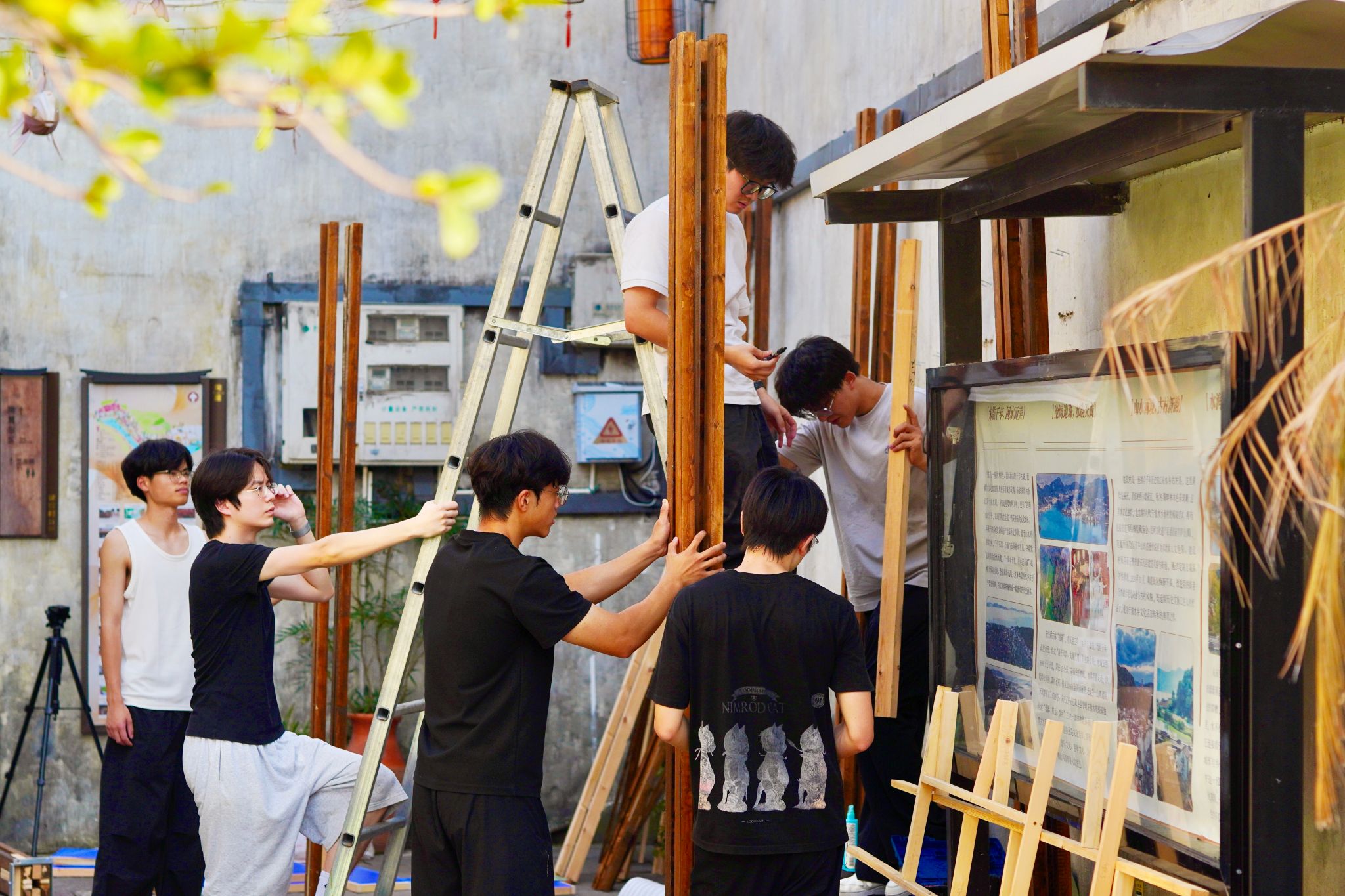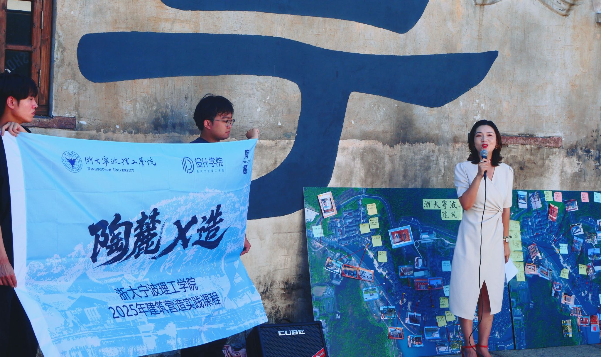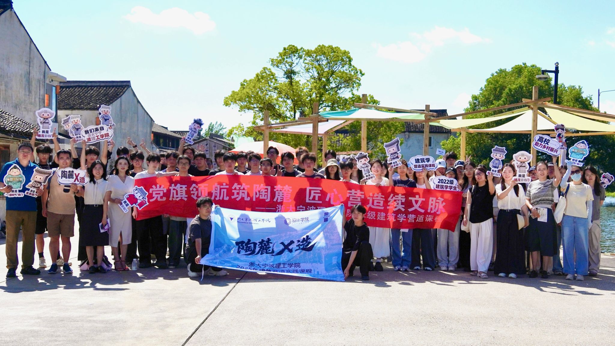 2025年9月14日,浙大宁波理工学院设计学院《建筑学营造实践》课程成果展在东钱湖陶麓文化历史街区隆重开幕。本次展览以"陶麓X造"为主题,集中展示了2022级建筑学学生在古村完成的四组建筑装置作品,标志着这门具有十年历史的课程再次取得创新突破。