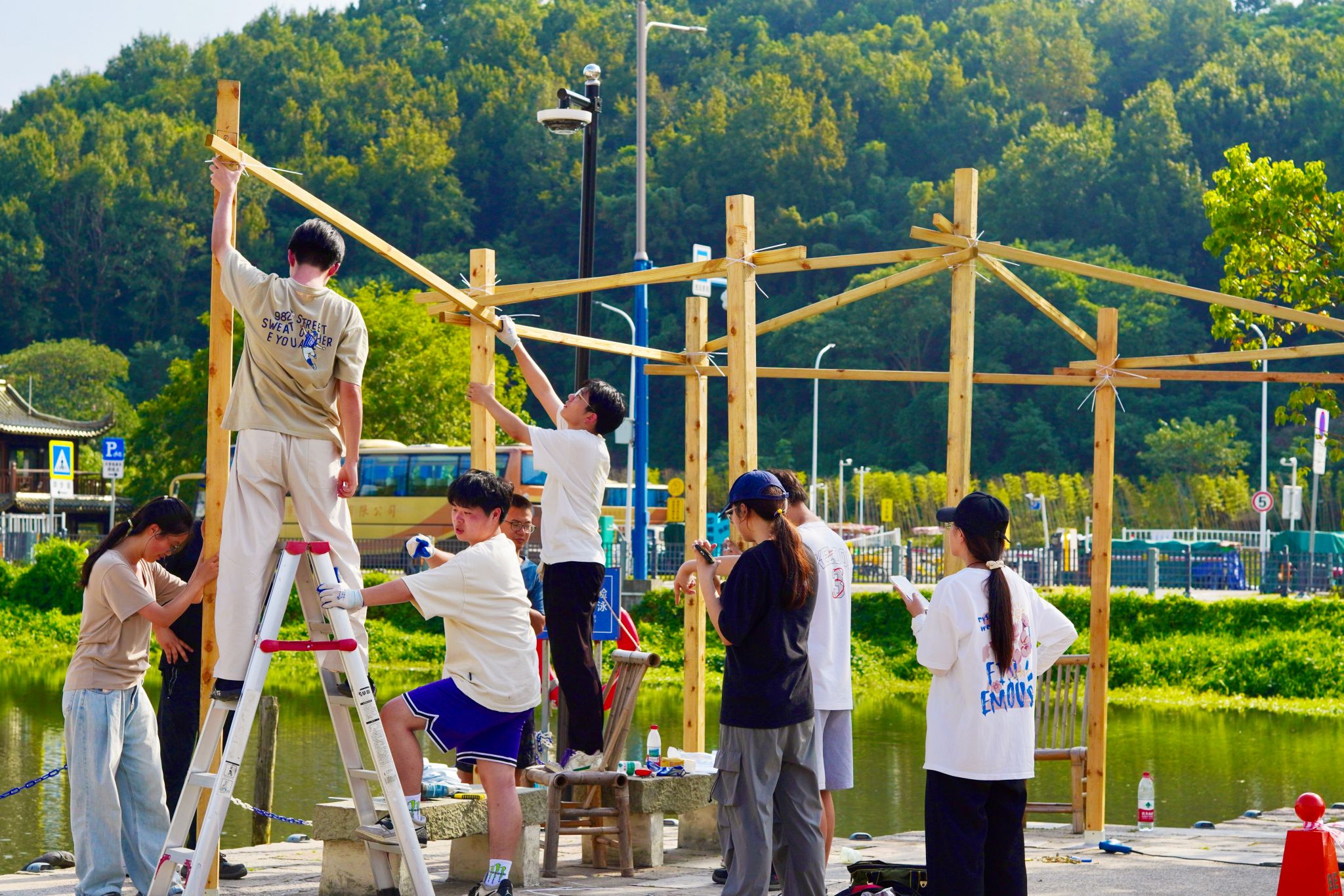 作为浙大宁波理工学院创新性应用型人才培养的特色课程,《建筑学营造实践》始终坚持以“真实建造”为核心目标:学生必须亲自动手,完成从设计图纸到1:1实体建造的全过程。这一坚持十年的教学传统,生动诠释了学院“创新精神、实践能力"的人才培养理念,并支撑建筑学专业获得了2024年宁波市高等教育教学成果一等奖等荣誉。