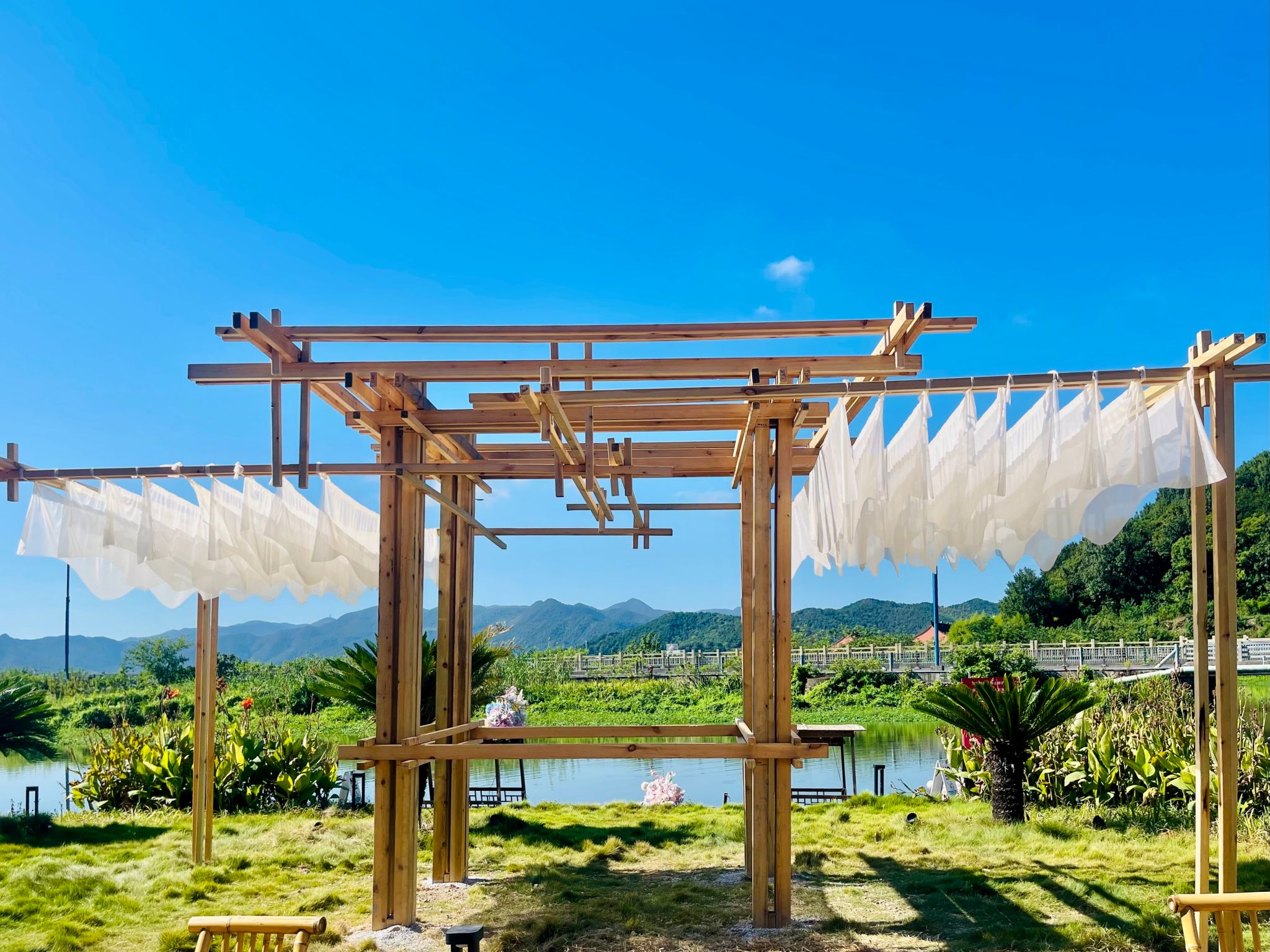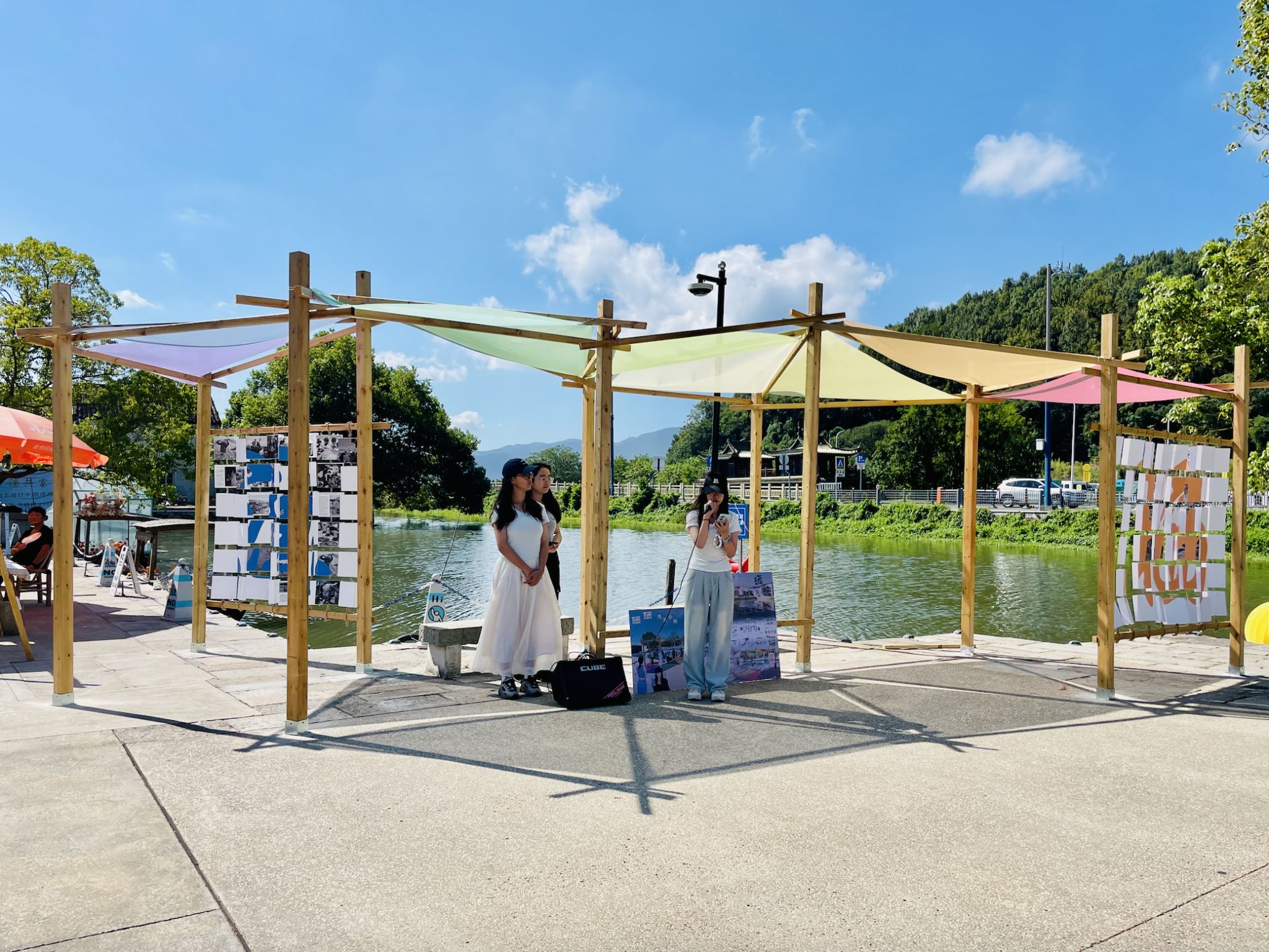 本次实践创作的四组作品深度融入了陶麓当地文化基因:《墙忆门声》以现代边亭形式转译宗族记忆与墙门肌理;《晒一晒》将休憩功能与渔文化互动装置相结合;《蠡施镜舫》通过水中浮屿形态对话历史传说;《沉云埠头》则重新激活了水岸埠头的空间记忆。