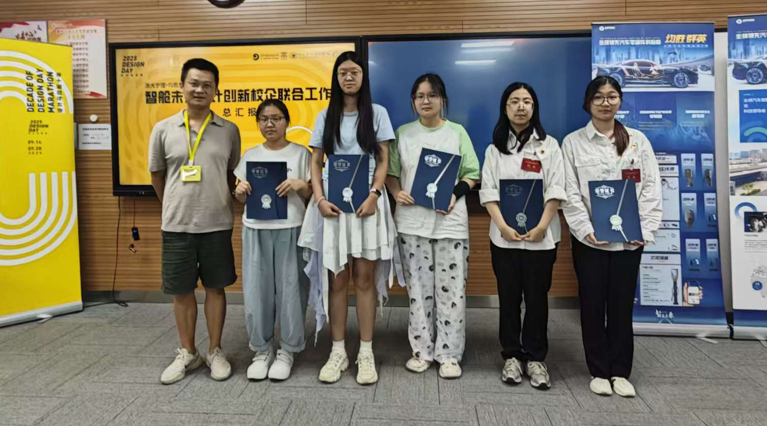 为期七天的共创之旅将课堂理论转化为真实的项目推演。同学们在思维碰撞中深化了对“人—车—环境”情感化协同的认知,在独立思考中提升了概念打磨与逻辑构建的能力。最终呈现的六组设计方案不仅获得企业方的高度认可,更从中评选出“最佳创新奖”和“最佳实践奖”两项大奖。