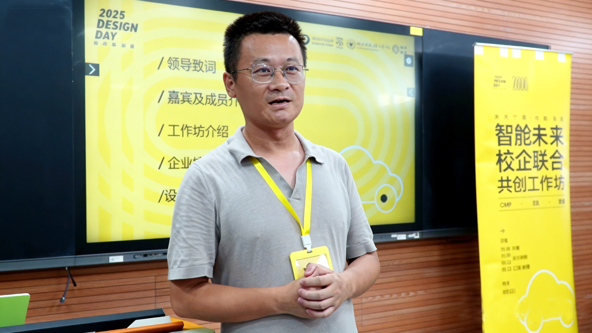 开营仪式上,王祖耀表示,本次工作坊是专业教育积极拥抱产业变革、勇于接受实践挑战的重要体现,智能座舱作为未来出行的核心载体,正在重塑人车关系与出行体验,这为同学们提供了锻炼系统设计能力与创新思维的绝佳平台。面对产业技术的快速迭代,王老师鼓励同学们以开放心态拥抱变化,在真实的产业语境中接受挑战、展现专业价值。随后,工业设计研究所贾鑫老师详细介绍了工作坊的主题框架与日程安排,为同学们勾勒出清晰的学习路径与成果预期。