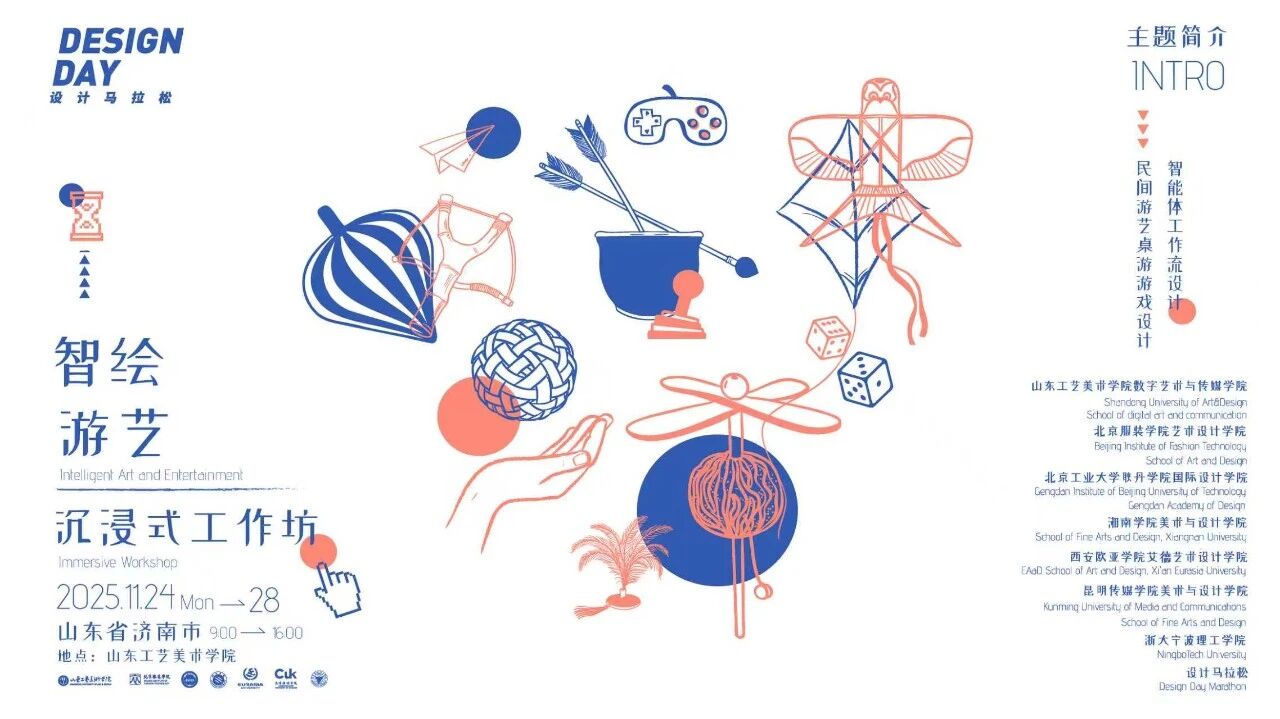 本次工作坊于11月24日在山东工艺美术学院潘鲁生民艺馆正式启动,历时五天。活动以“AI与民间游艺深度融合”为主题,汇聚了来自山东工艺美术学院、北京服装学院、浙大宁波理工学院、北京工业大学耿丹学院、湘南学院、昆明传媒学院、西安欧亚学院等多所高校的18位专家导师及60余位师生,共同探索数字艺术与传统民艺的创新融合路径。我校师生积极融入这一跨学科、高强度的共创氛围,与各校同仁协力展开理论与实践并重的深度研讨与创作实践。
