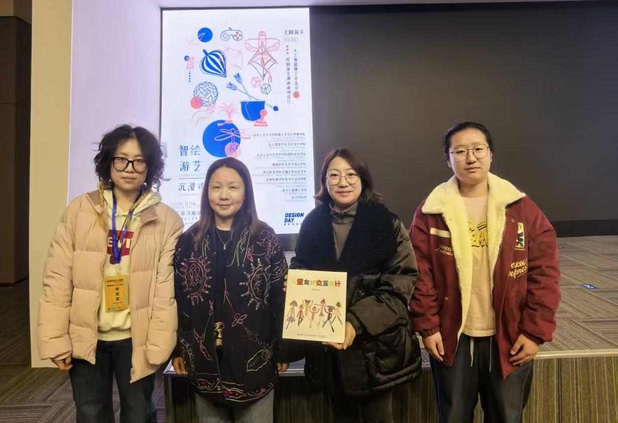 AI赋能民艺,校际协同创新。为响应国家新文科建设与跨领域人才培养号召,我校设计学院智能交互设计专业师生积极参与跨校共创实践。近期,在专任教师贾鑫带领下,2023级徐萍与2024级常力文两位同学赴山东工艺美术学院,参加了由该校与北京服装学院联合主办的“智绘游艺”沉浸式工作坊暨设计马拉松线下训练营,设计作品获金奖、银奖各1项。