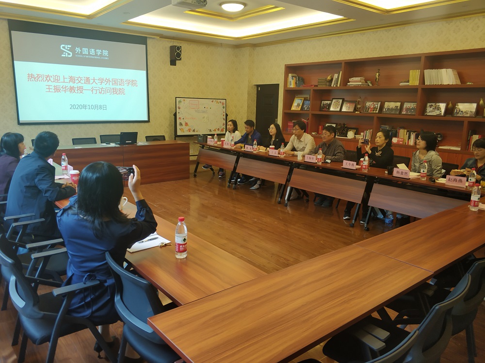 2020年10月8上午,上海交通大学外国语学院马丁适用语言学研究中心团队在王振华教授的带领下到浙大宁波理工学院外国语学院开展调研,外国语学院院长王小潞教授、副院长蔡亮教授,波兰研究中心副主任胡海鹏副教授一行在SC106波兰研究中心热情接待了团队来访并开展了热烈的交流会谈活动,会议由蔡亮主持。