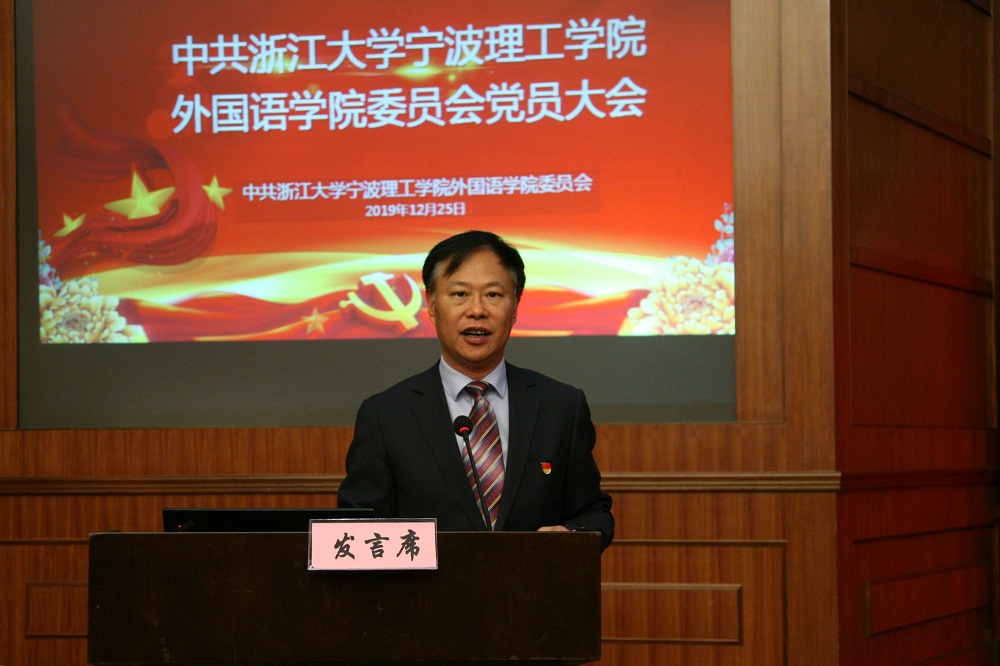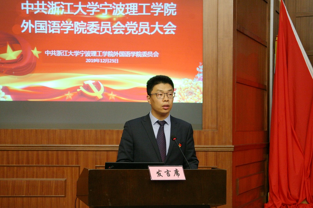 12月25日晚,中共浙江大学宁波理工学院外国语学院委员会党员大会在金宗城法学教学中心召开。学校党委副书记兼纪委书记顾禹标,党委组织部副部长刘哲出席大会,任凯主持会议。学院党员及受邀民主党派代表共90余人参加本次大会。