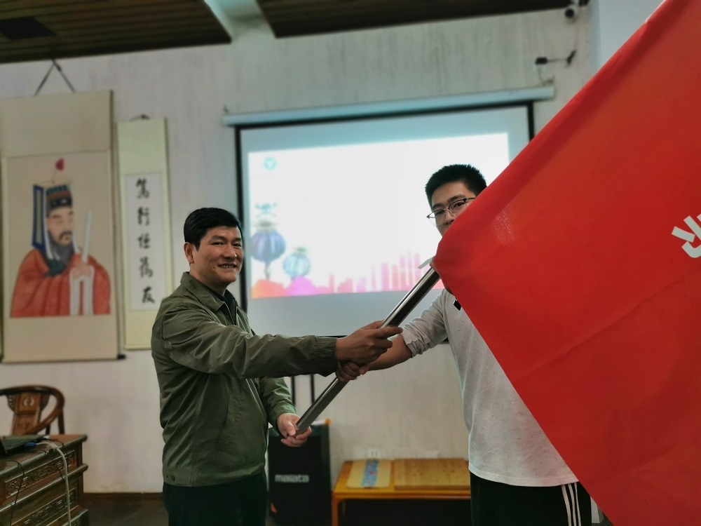 活动一开始,由市禁毒办副主任徐玮为学校禁毒宣传志愿者服务队进行授旗仪式,
