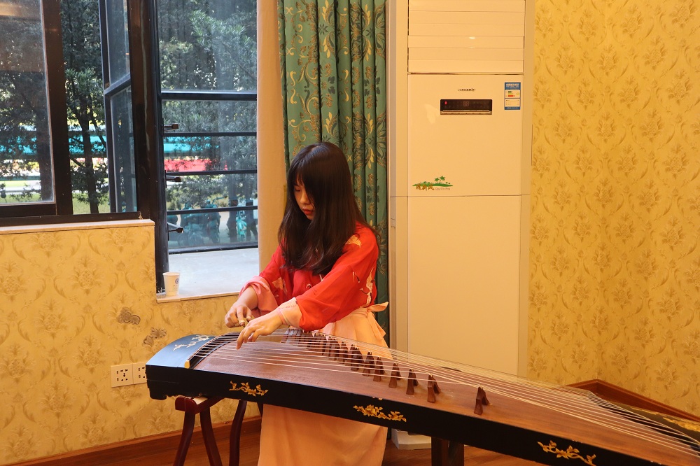 活动第三篇章“音乐不断,颂祖国”,外国语学院的王冰洁同学带来古筝演奏《大鱼》,外国语学院合唱团与文华社区党员代表同唱一首歌《我和我的祖国》,共建活动在歌声中落下帷幕。