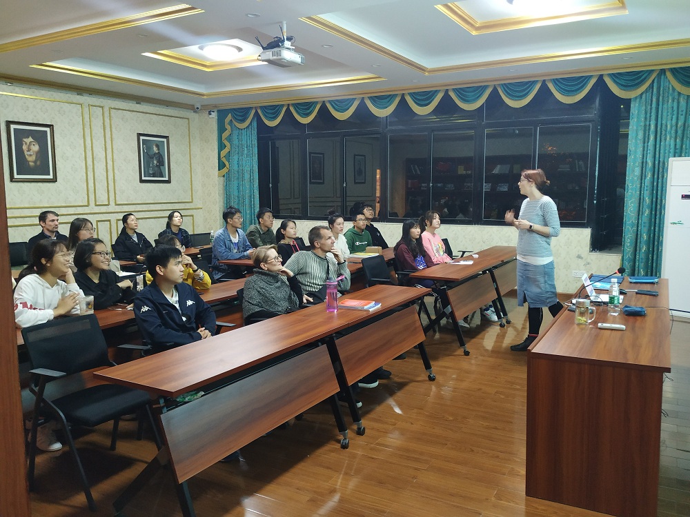 学校外籍教师克里斯缇娜博士是一名语言学博士,平时十分注重学生的语言功底培养,每个学期都会举办结合学术的工作坊活动,给在校学生提供浸入式的英语环境,通过扩展他们的视野,提升他们对语言研究的兴趣。