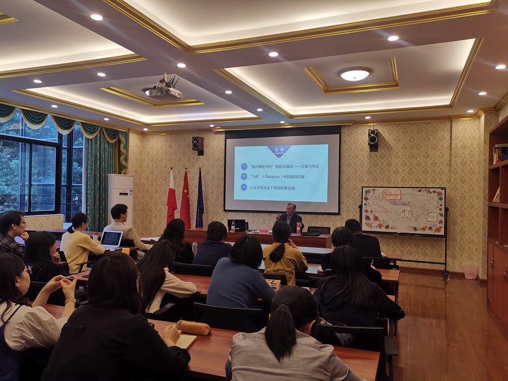 2019年10月24日下午,北京外国语大学英语学院教授,博士生导师张中载先生在浙江大学宁波理工学院波兰研究中心作题为“百年变革中的英语文学(1919-2019)”的学术讲座。本次讲座是随园讲坛第四十二期,由外国语学院副院长周汶主持。