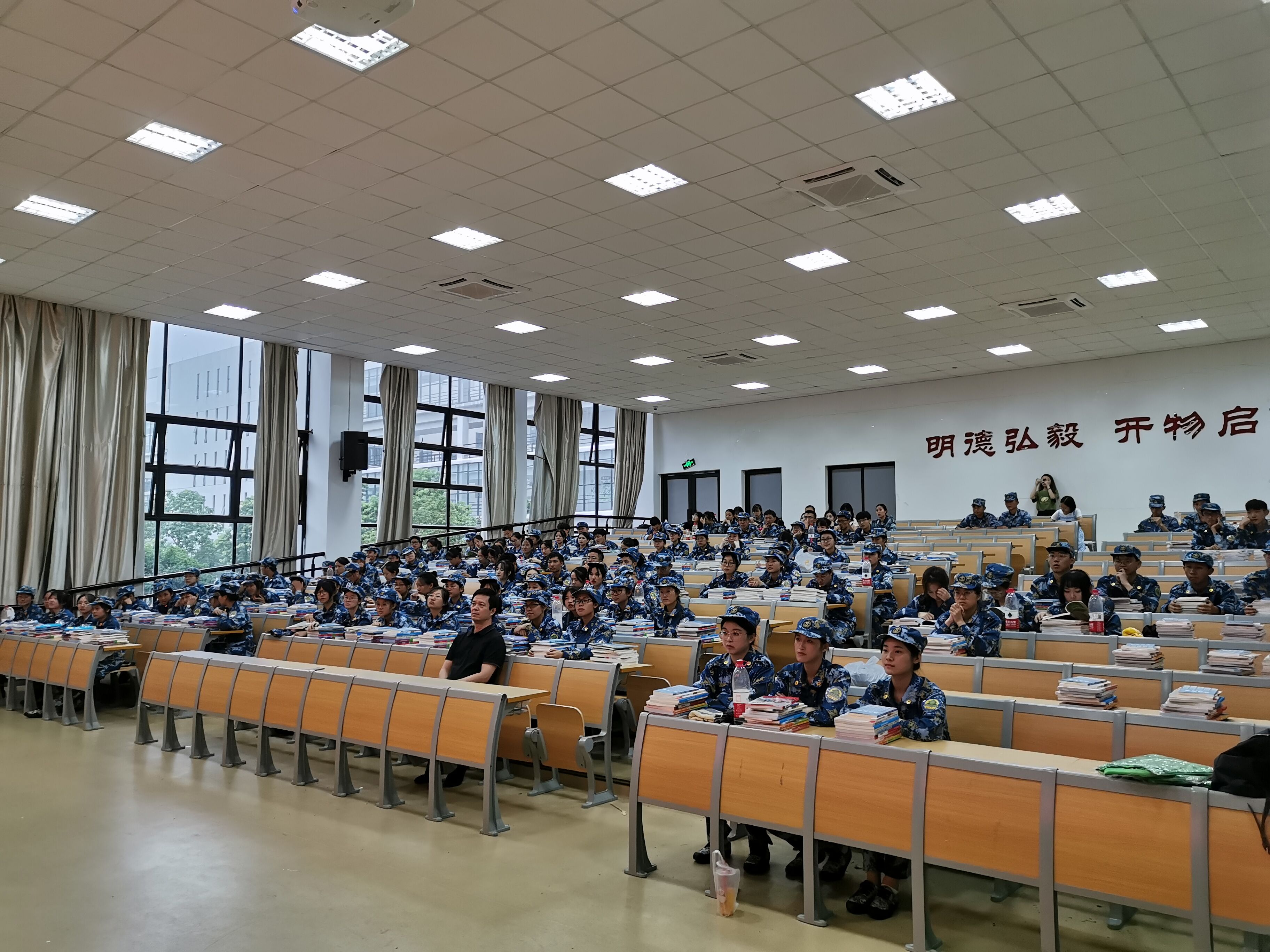 活动开始之前,全体参训人员为大家带来了精彩的合唱《相亲相爱》。会议首先由学院党委副书记傅晓宇老师发言,她对全体四连参训人员的昂扬的精神面貌表示赞赏和表扬,对军训教官付出的努力与汗水表示了感谢与敬意。副院长周汶老师在发言中表示,虽然同学们的军训与参军有着不一样的强度,但锻炼的是同样的军事素质,希望四连的全体同学能够在之后为期不多的军训中发挥出最好的水平,取得最优异的成绩。党委副书记任凯老师在发言中用风趣幽默的语言表示军训虽苦,但最终收获一定是甜的,他希望同学们为了四连集体的荣誉,坚持奋进。此次会议上,学院领导为四连的军训教官送上慰问,各班班导师助理也为各班同学送上了情意满满的慰问品以及最真挚的关心与问候。