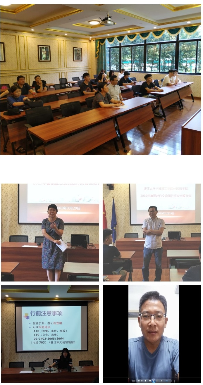 7月29日下午,外国语学院在SC106波兰中心召开2019年暑期赴日学习交流团的行前教育会,外国语学院党委副书记傅晓宇、副院长蔡亮、带队老师蔡蕾、外事秘书郑巍和赴日学习交流团的14名同学和部分学生家长参加了会议,会议由蔡亮副院长主持,在外出差的外事处程萌副处长以视频形式参加此次会议。