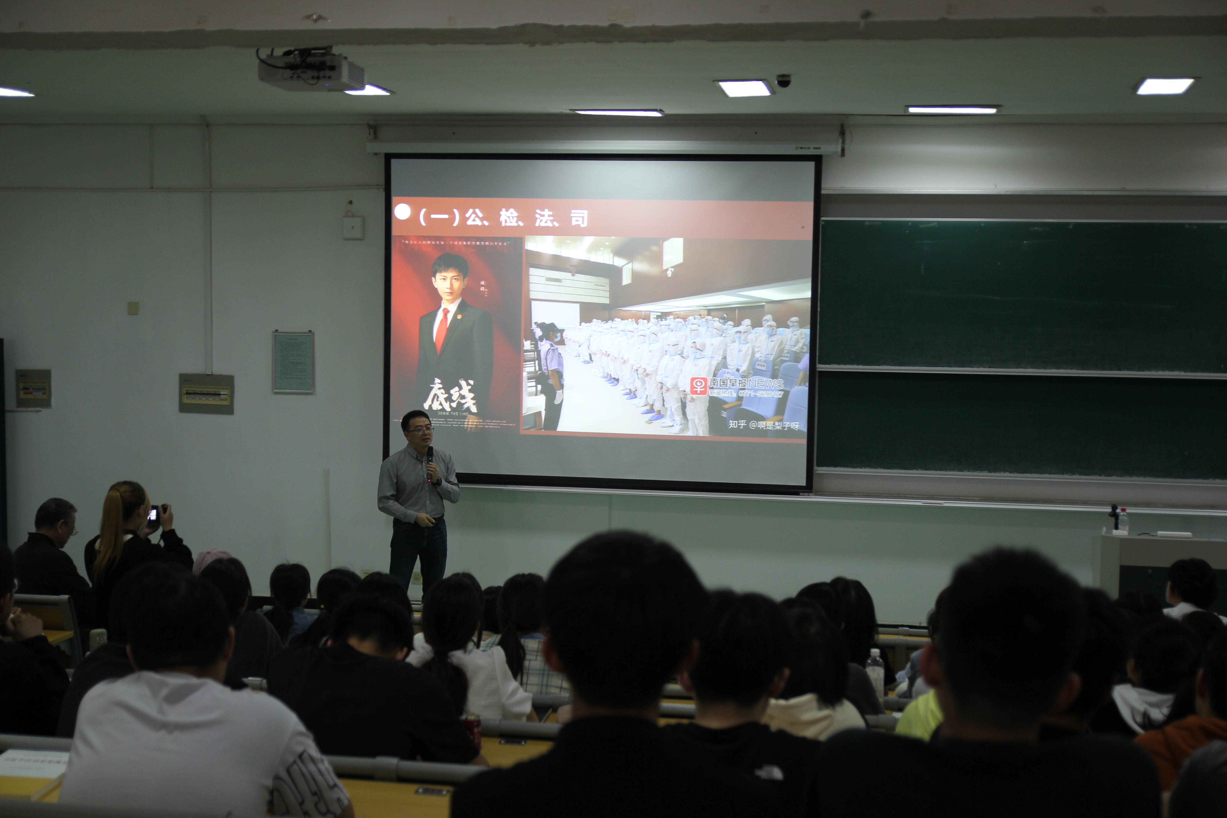 为了增强法学学生对法院的初步认识,让法治观念更加深入人心,11月10日下午,百名法官、检察官、律师进校园(全过程导师制)第一讲——“认识法院”活动在SC216教室顺利进行,本次活动由启新特聘教授、国务院政府特殊津贴专家金彭年主持,宁波市江北区人民法院院长、二级高级法官傅勇主讲,传媒与法学院2022级法学专业全体学生参加本次活动。