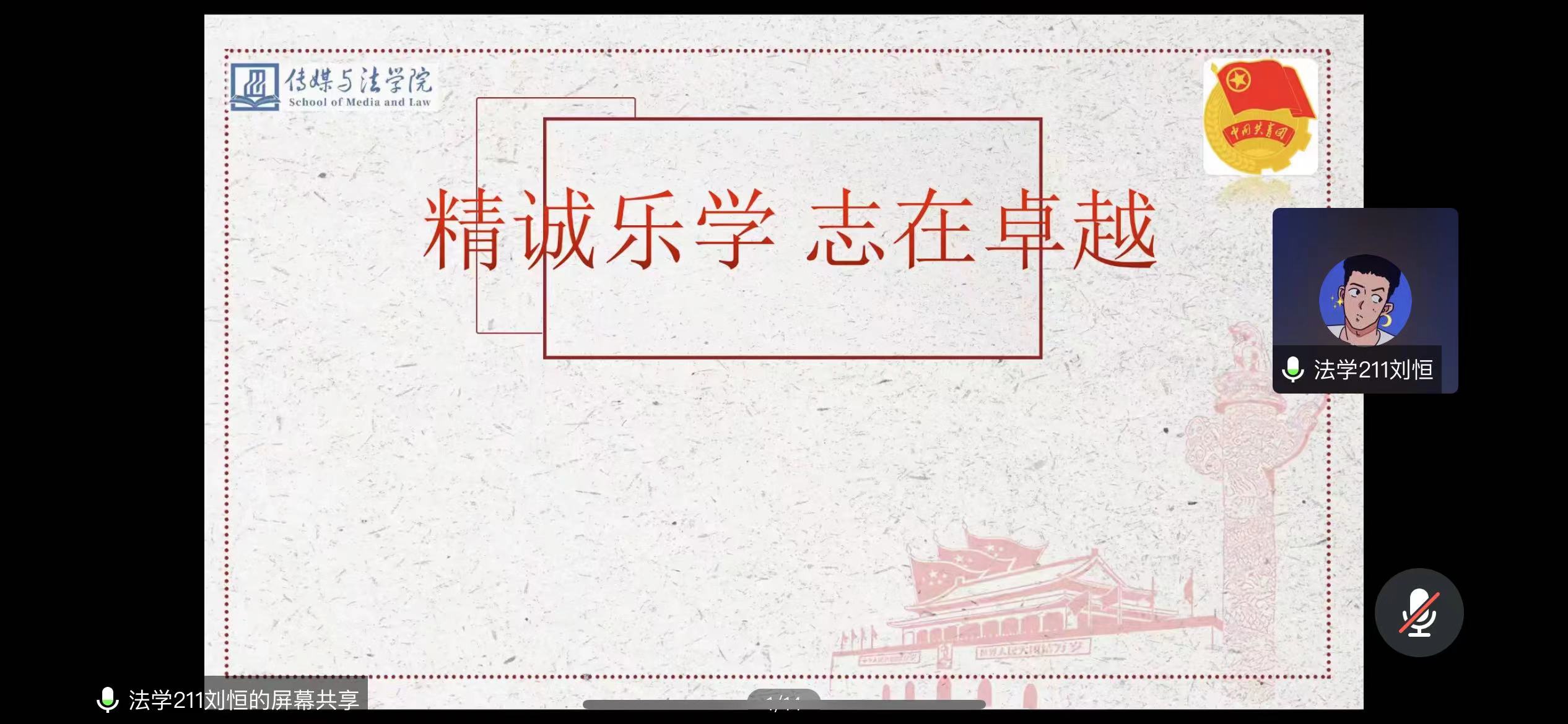 为积极贯彻学校优良学风班建设要求,进一步营造优良院风、学风,推动传媒与法学院人才培养中心工作的开展,进一步打造优秀班集体,充分发挥学生班集体在“自我教育、自我管理和自我服务”中的积极作用,形成良好的学习奋进氛围,10月17日晚,传媒与法学院2021-2022学年优良学风班暨“星”班级创建总结评比活动在线上如期举行,传媒与法学院党委副书记、纪委书记胡鹿鸣,思政主管曲昊杨,辅导员及各班学生代表参加了此次活动。