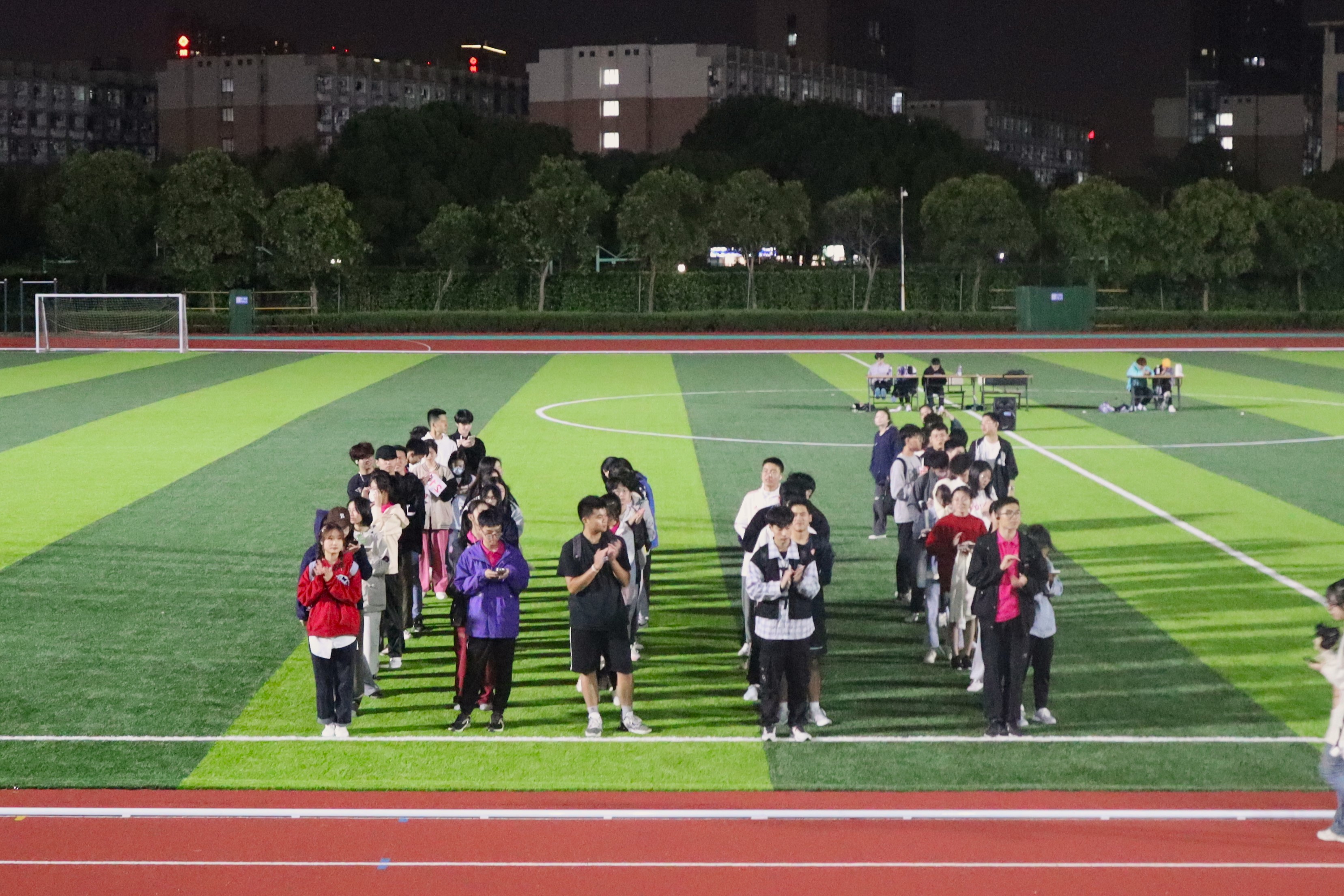 奏鸣青春旋律,燃情热血赛场。场上,运动员们突破自我,与时间赛跑,夜色下的他们奋力拼搏,跌倒之后勇敢起身,继续向前奔跑,展现着少年的朝气与锋芒;场下,工作人员恪尽职守,服务运动员,同学们为运动员们呐喊助威,为赛场增添热情。