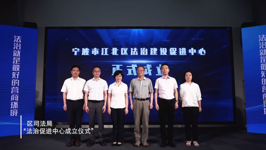 浙大宁波理工学院是本次活动的高校合作单位,我院金彭年教授、韩缨副教授、董玉鹏副教授受邀参会。金彭年教授与江北区司法局领导共同完成了“江北区法治促进中心”成立仪式。