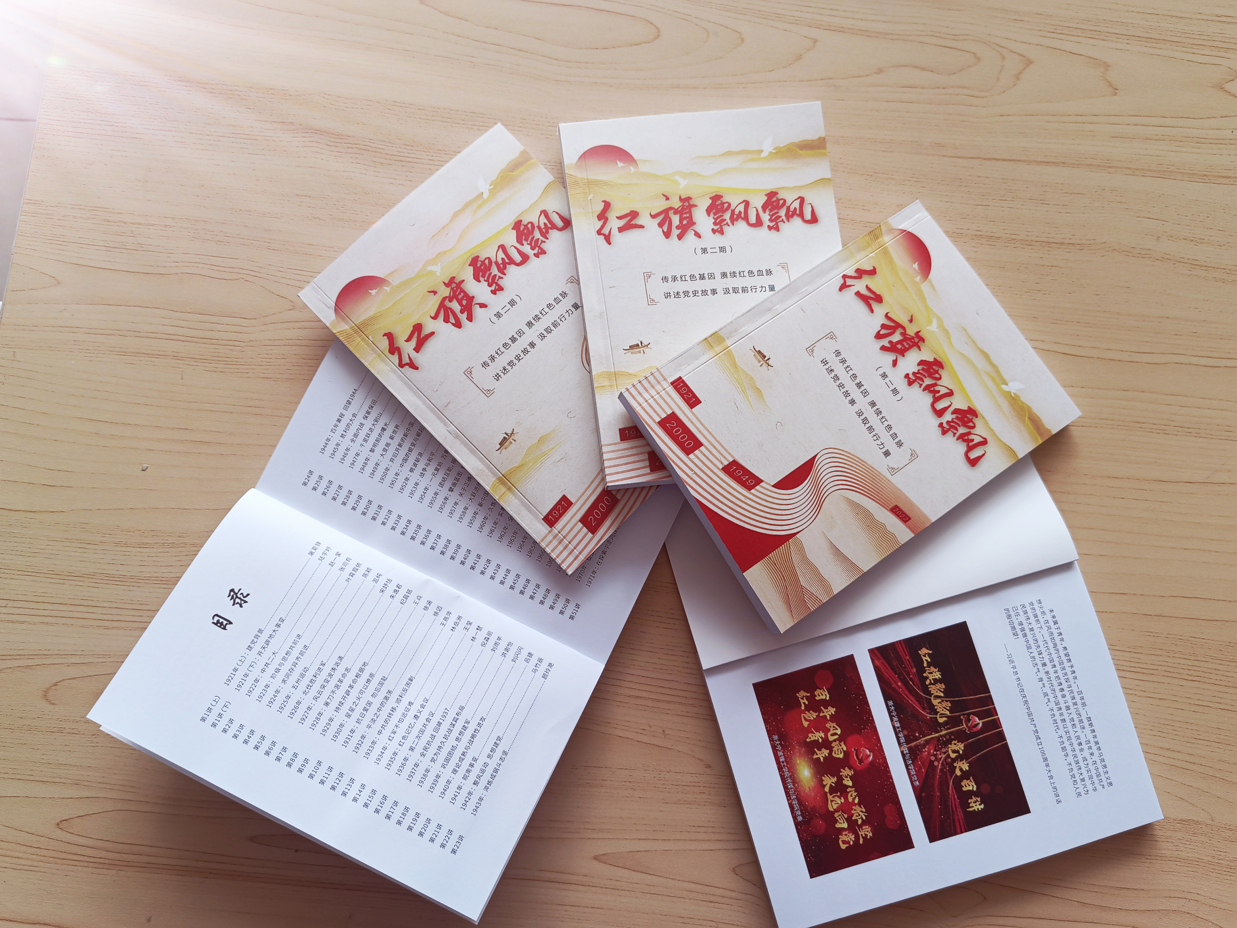 2022年6月,在传媒与法学院党委的领导下和师生党员的共同努力下,“红旗飘飘 党史百讲”党史学习教育成果汇集成册,推出了第二期《红旗飘飘》。