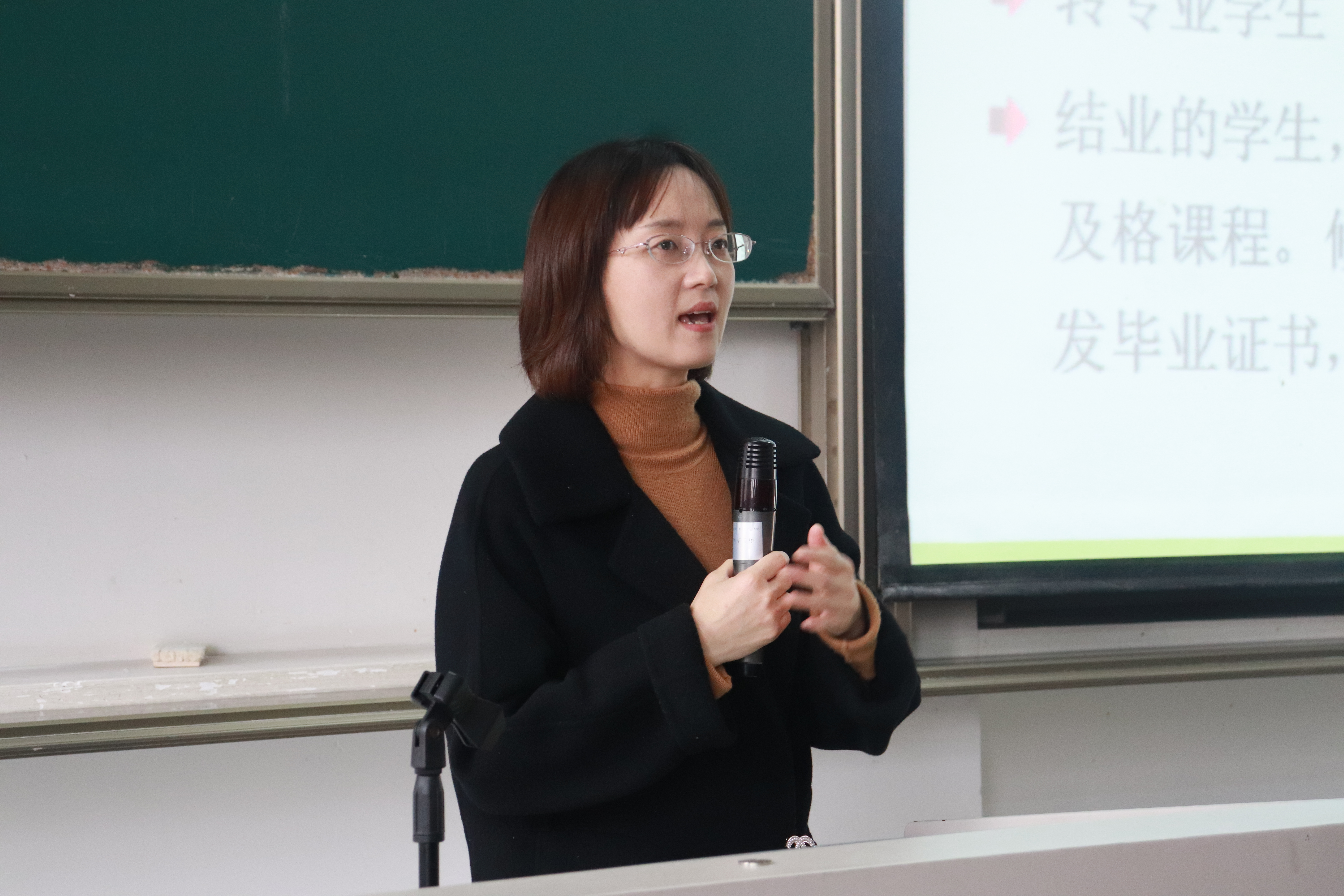 首先,董亚钊老师回顾了2021届毕业生就业情况,就2022届毕业生面临的就业形势进行了分析,而后就学院就业工作奖励办法、毕业生就业网签流程以及就业安全教育进行了详细阐述。接着,韩缨老师向毕业生讲解了毕业论文相关工作说明,在讲解过程中仔细介绍了毕业论文和论文答辩的时间安排、开题答辩和正式答辩的基本要求、开题报告的内容要求、毕业论文的查重标准和论文的注意事项。紧接着,周密老师就毕业生的毕业资格要求、学位资格要求、受处分学生学位申请和毕业证、学位证的领取进行了介绍。