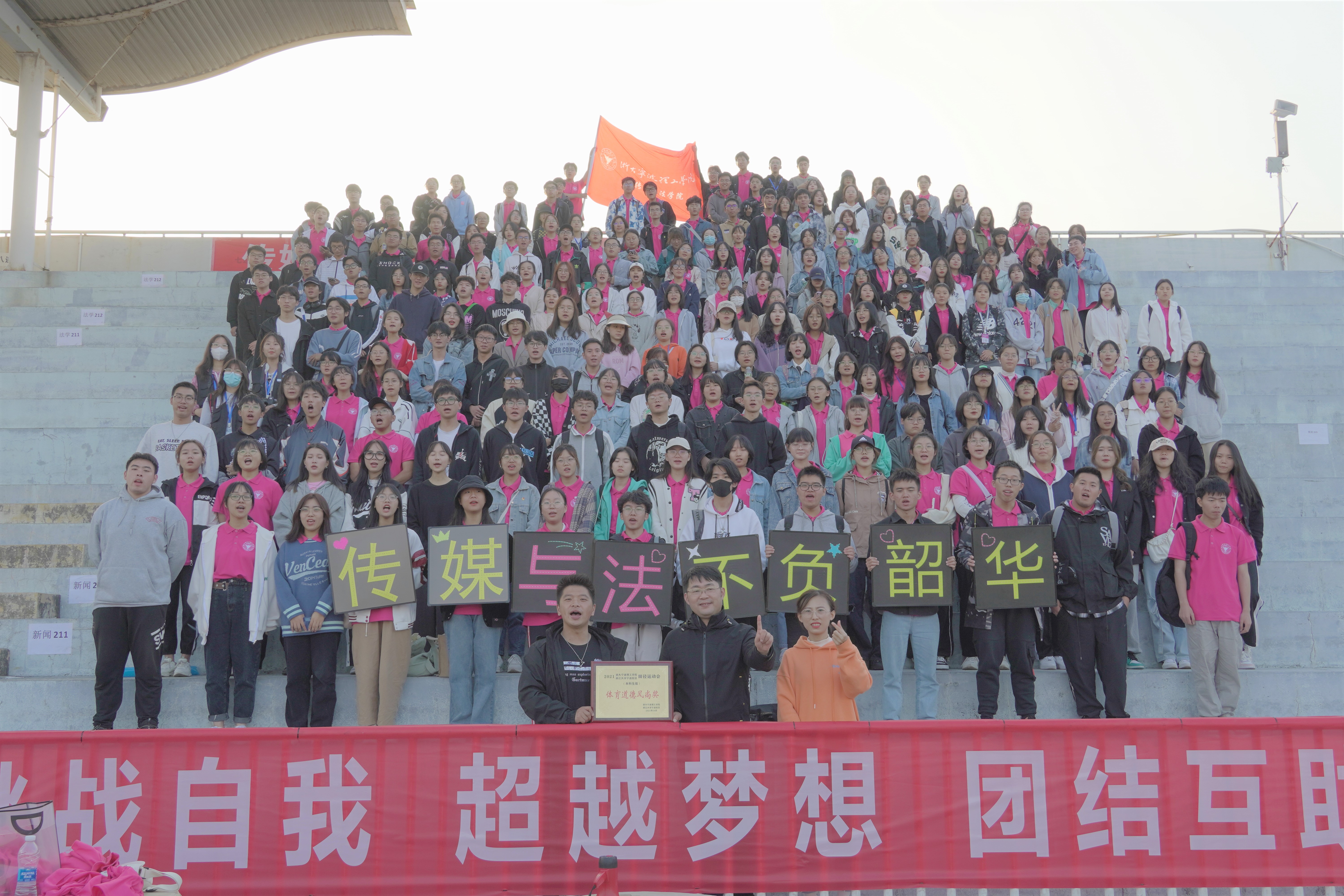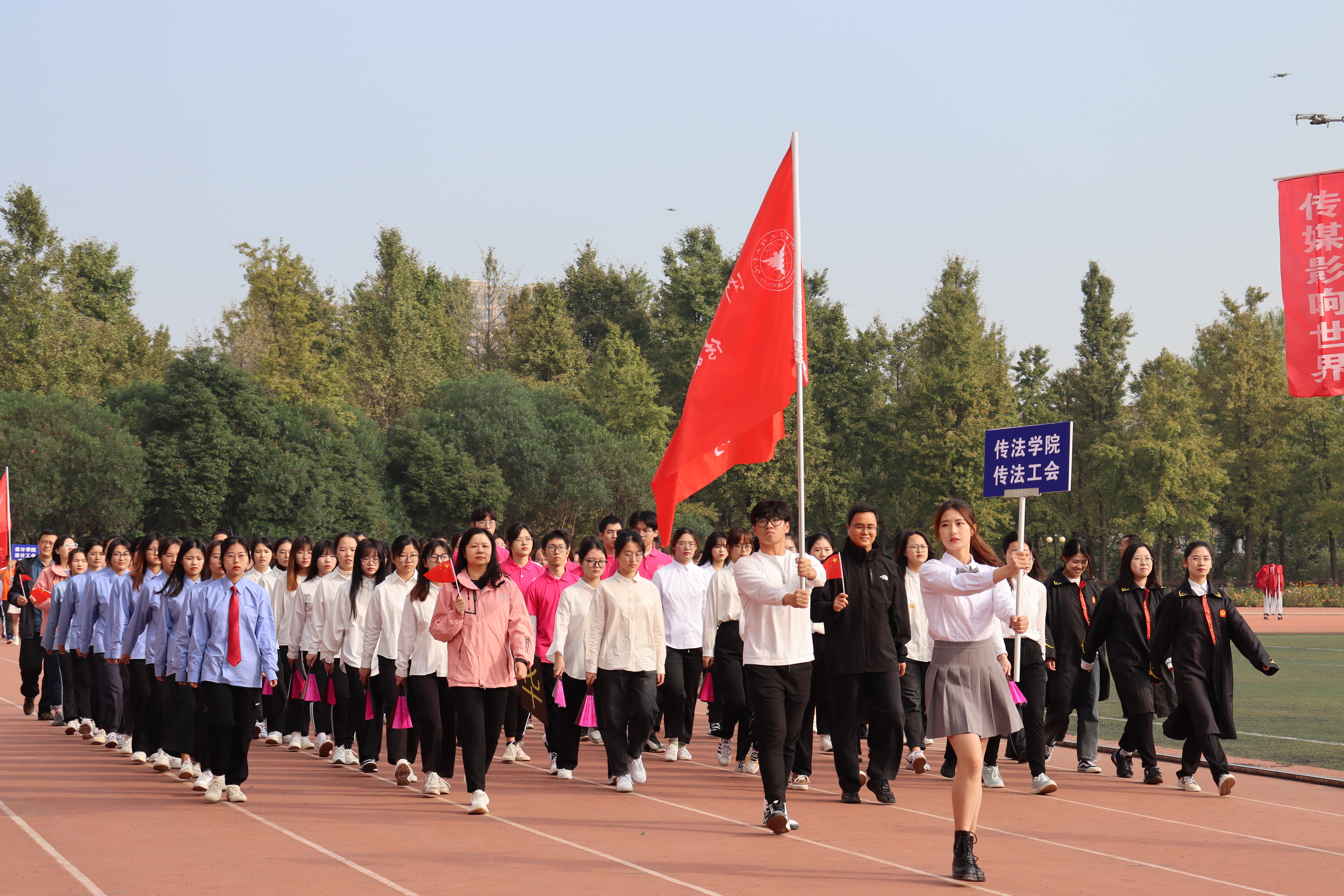 10月29日下午校运会圆满闭幕,学院荣获体育道德风尚奖、团体总分第四名等成绩。本次运动会充分展示了传法学院学子的青春风采,赛道还在延伸、热血依旧沸腾,相信今日的成绩只是一个起点,传法学子会在日后的种种挑战中绽放更多的光彩,创造更多辉煌!
