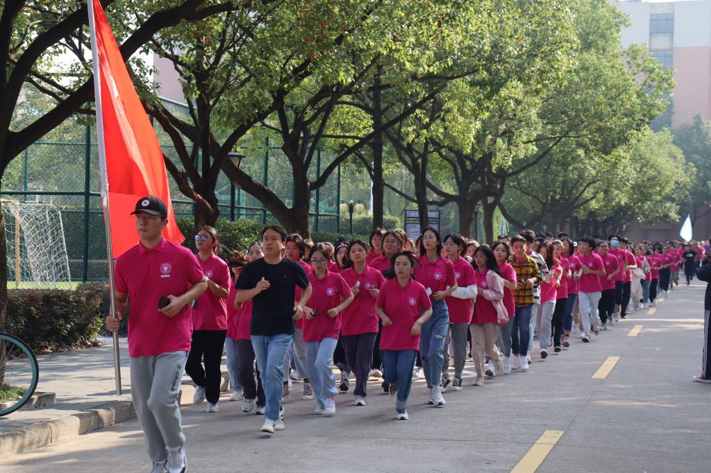 为展现宁理学子的青春风采和体育精神,10月28日上午,2021校田径运动会如期举行。学校党委书记胡征宇宣布运动会正式开幕,随后传媒与法学院的师生方阵迈着整齐的步伐走向主席台,他们喊着:“传媒影响世界,法治改变中国”的口号,展现了传法师生昂扬向前的精神风貌。开幕式结束后,校院领导和全体2021级新生一起参与了阳光健身跑活动,师生共跑的画面成为了校园里一道靓丽的风景线。