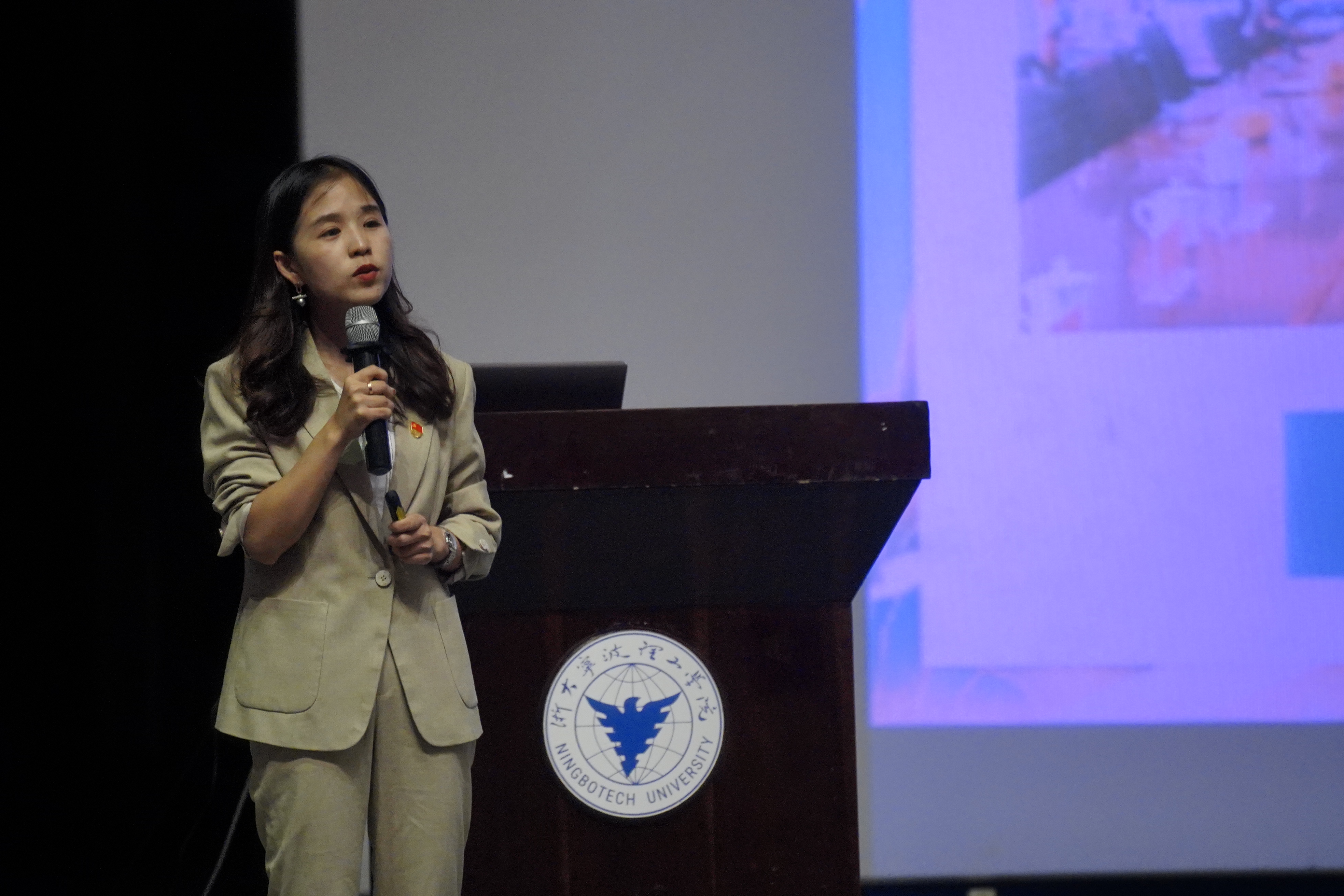 陈艳以“共同富裕勇担当,青春建功新时代”为主题,围绕“什么是共同富裕”“宁波如何建设共同富裕先行市”、‘我在窗口写青春’浙江青年携手共同富裕”三个方面,深入浅出地进行讲解,指出共同富裕是共产党人矢志不渝的奋斗目标。引导学生如何利用专业优势和特点,通过社会实践等形式助力浙江共同富裕高质量发展。