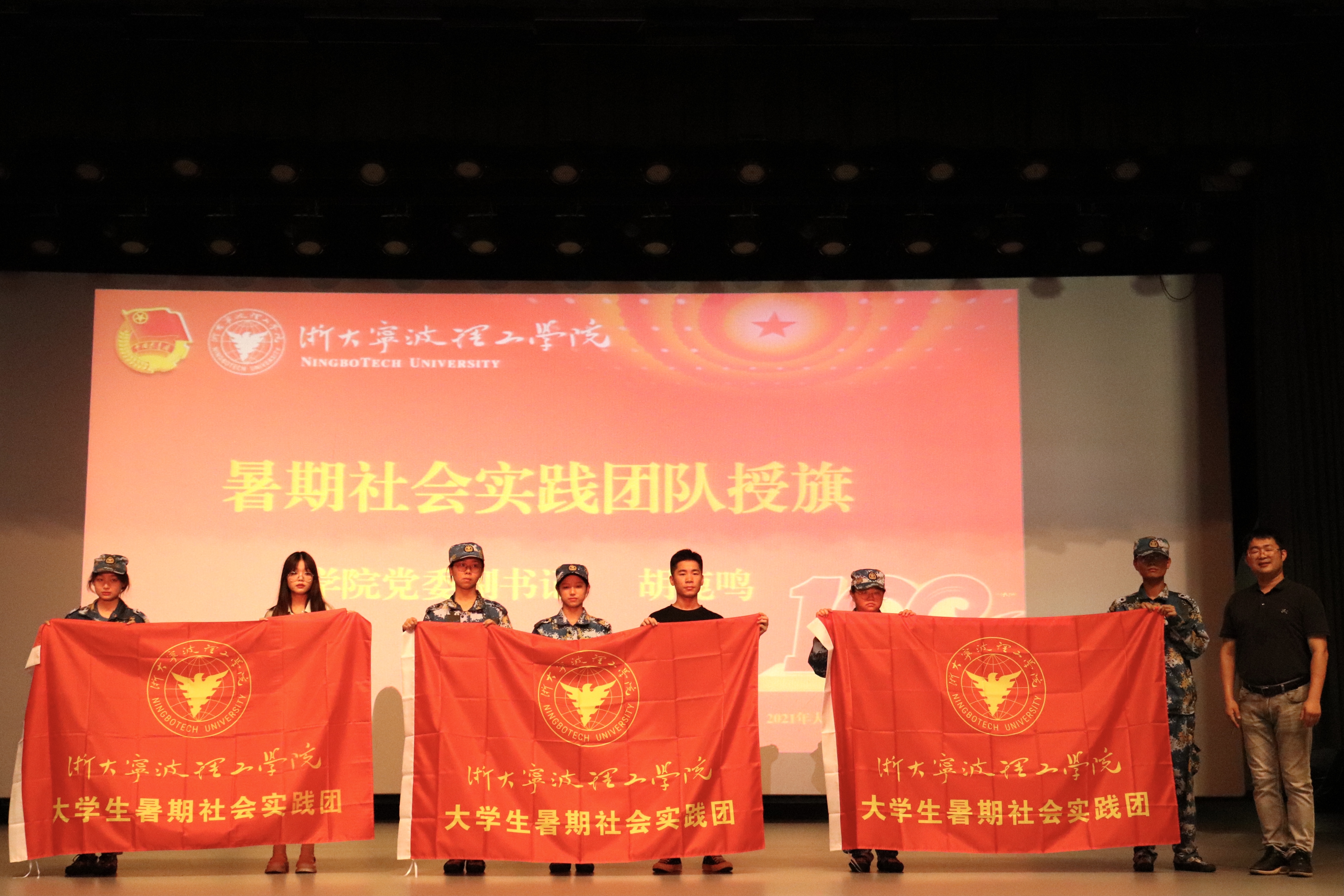浙大宁波理工学院传媒与法学院暑期社会实践出征仪式暨安全教育培训在胡鹿鸣老师的宣布下正式开始。仪式伊始,由学院党委副书记胡鹿鸣作动员讲话,提出了“在实践中承担青春使命,在服务中实现青春价值”“在实践中增长自身才干,在艰苦环境中磨炼意志品质”“在实践中展现学校形象,在社会荣辱中打造业绩”的三点希望,并为“一院一品”实践团队授旗,合影留念。随后,学院团委书记李倩倩对暑期社会实践工作进行部署,强调落实安全员报告制度、做好宣传报送工作、明确考核评价标准的三个要求。紧接,由学院思政副主管曲昊杨为暑期社会实践从提高安全意识、实现安全零报告、注重安全问题三个方面做安全教育培训。然后,学生代表梁泽樱通过线上视频从组建团队的初衷、如何安排工作并具体落实、实践进行方式、实践问题的四个方面分享经验。最后,与会全体团队成员签署安全承诺书