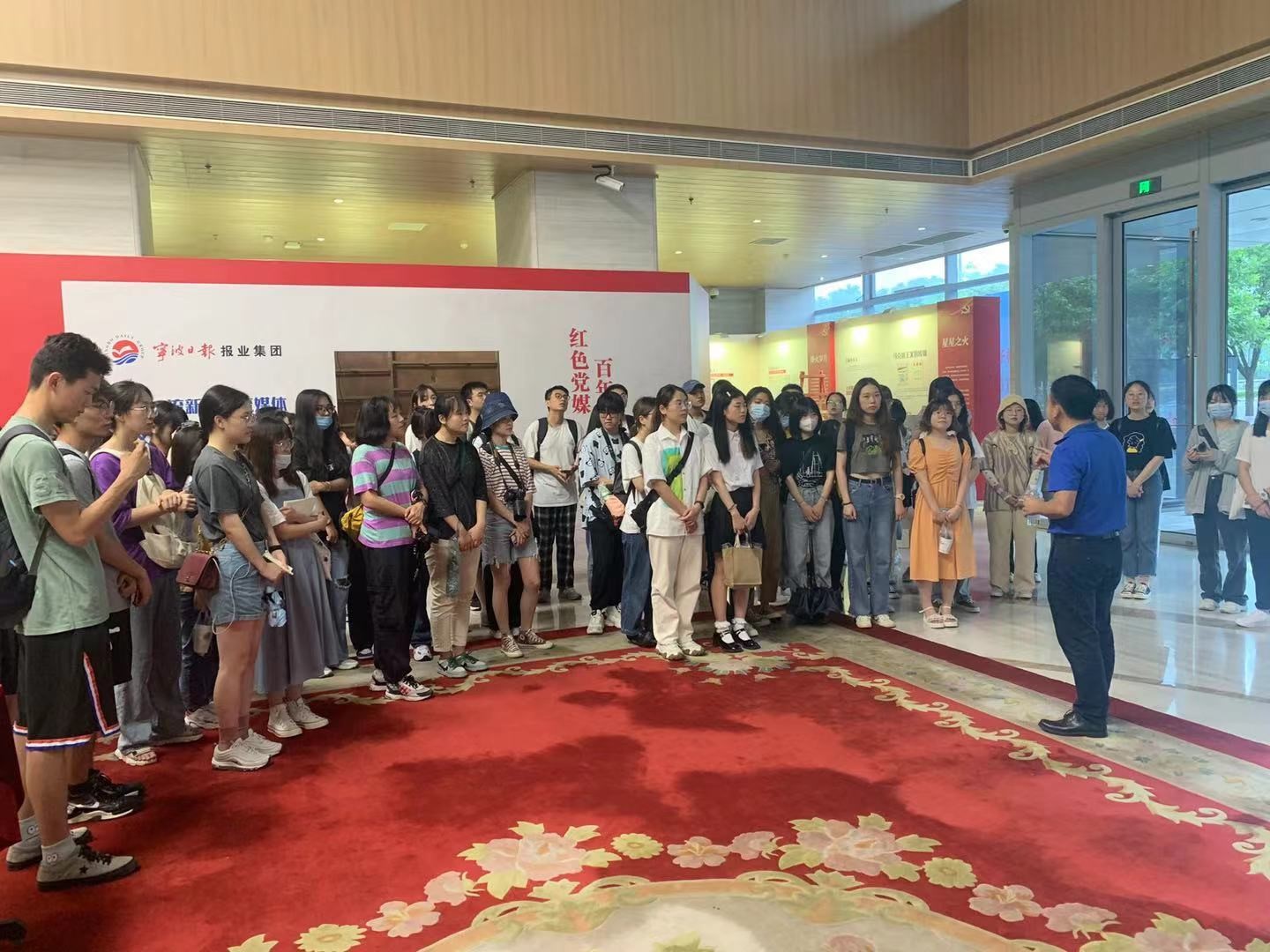 6月26日上午,传媒与法学院张文祥教授带领我院新闻19级72名同学来到宁波日报报业集团,分别参观了宁波日报报业集团报史馆、甬派客户端编辑部和宁波城市大脑,就媒体融合、打造新型主流媒体、智慧城市建设等前沿问题进行了深入学习和交流。