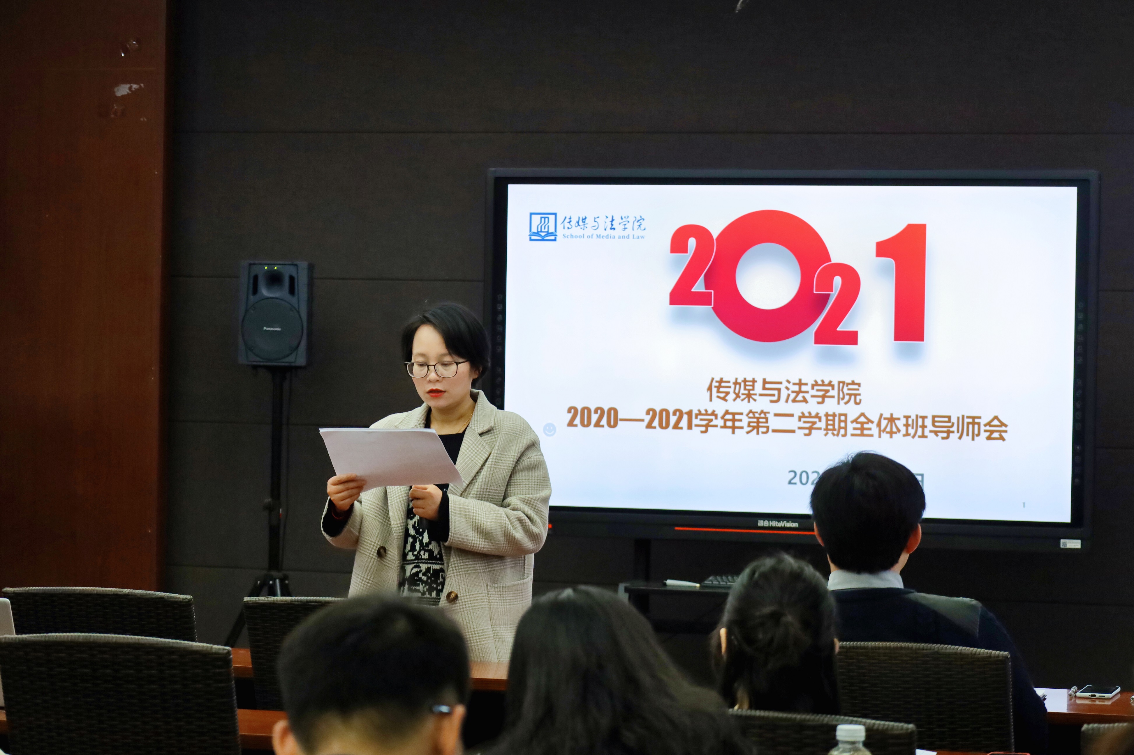 为了更好地推进新学期学生的教育管理和人才培养工作,保障新学期各项工作的顺利开展,3月26日下午,传媒与法学院于SC101会议室召开2020-2021学年第二学期全体班导师会议,并就毕业生的就业工作进行了专项部署和交流。学院党委副书记、纪委书记胡鹿鸣,全体班导师、辅导员参与会议。