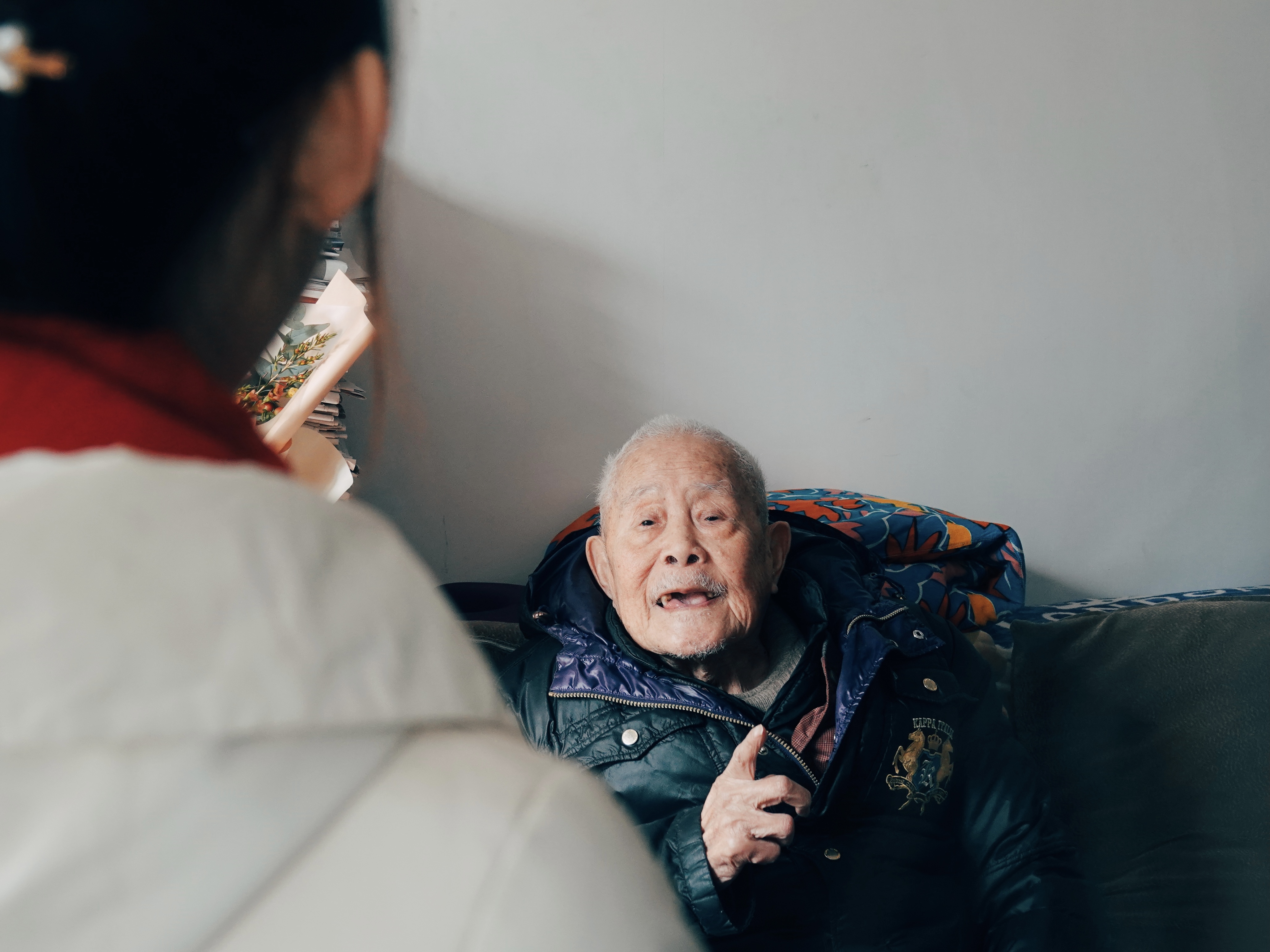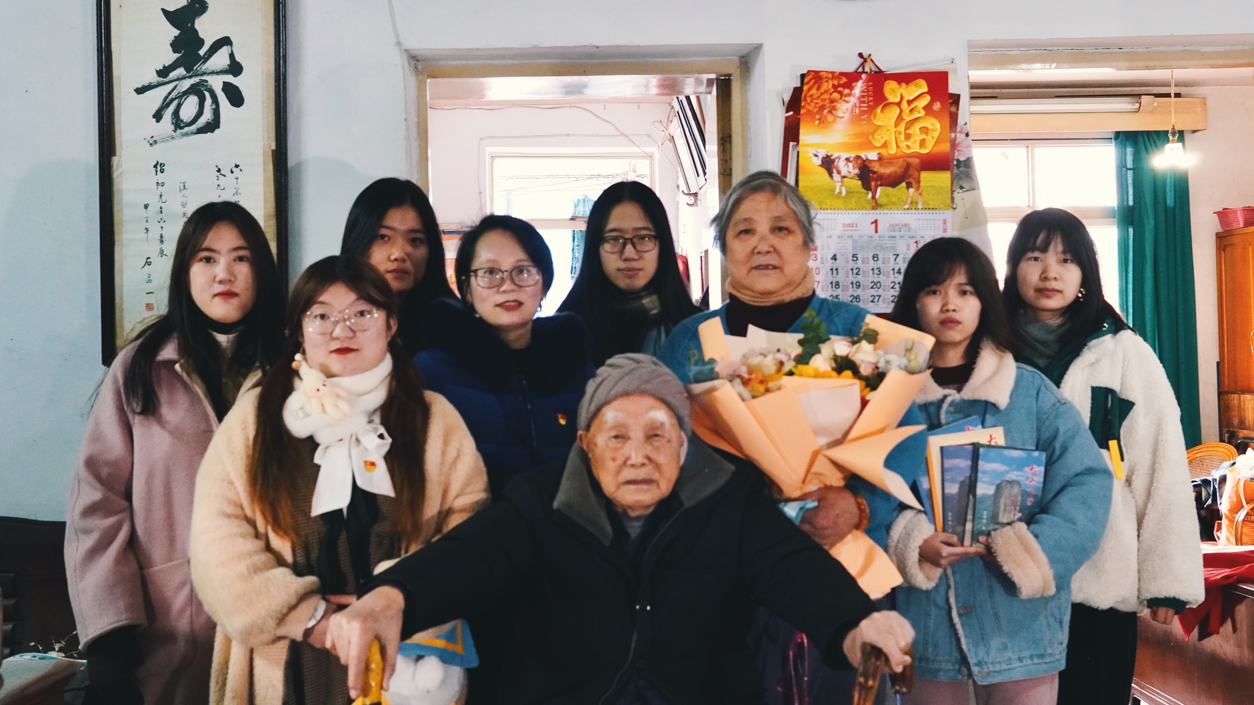 1月9日上午,辅导员李倩倩带领6位同学前往宁波市海曙区白云山庄慰问采访退休干部葛石峰同志。葛石峰同志今年96岁,历经一个世纪的洗礼仍然容光焕发。他曾多次参战,在抗日战争、解放战争和抗美援朝战争中表现十分勇猛。一个台风呼啸的夜晚,葛石峰同志及其战友共三人乘一小舟夜渡大河执行北撤的命令。期间战友受伤,他偶遇岛民并求助,恰好岛民一直以来对新四军心怀感恩,热情援助他们一行人。葛石峰同志讲述的这段经历十分生动,在场的同学放佛身临其境,不禁赞叹葛石峰同志机敏勇敢的行为。