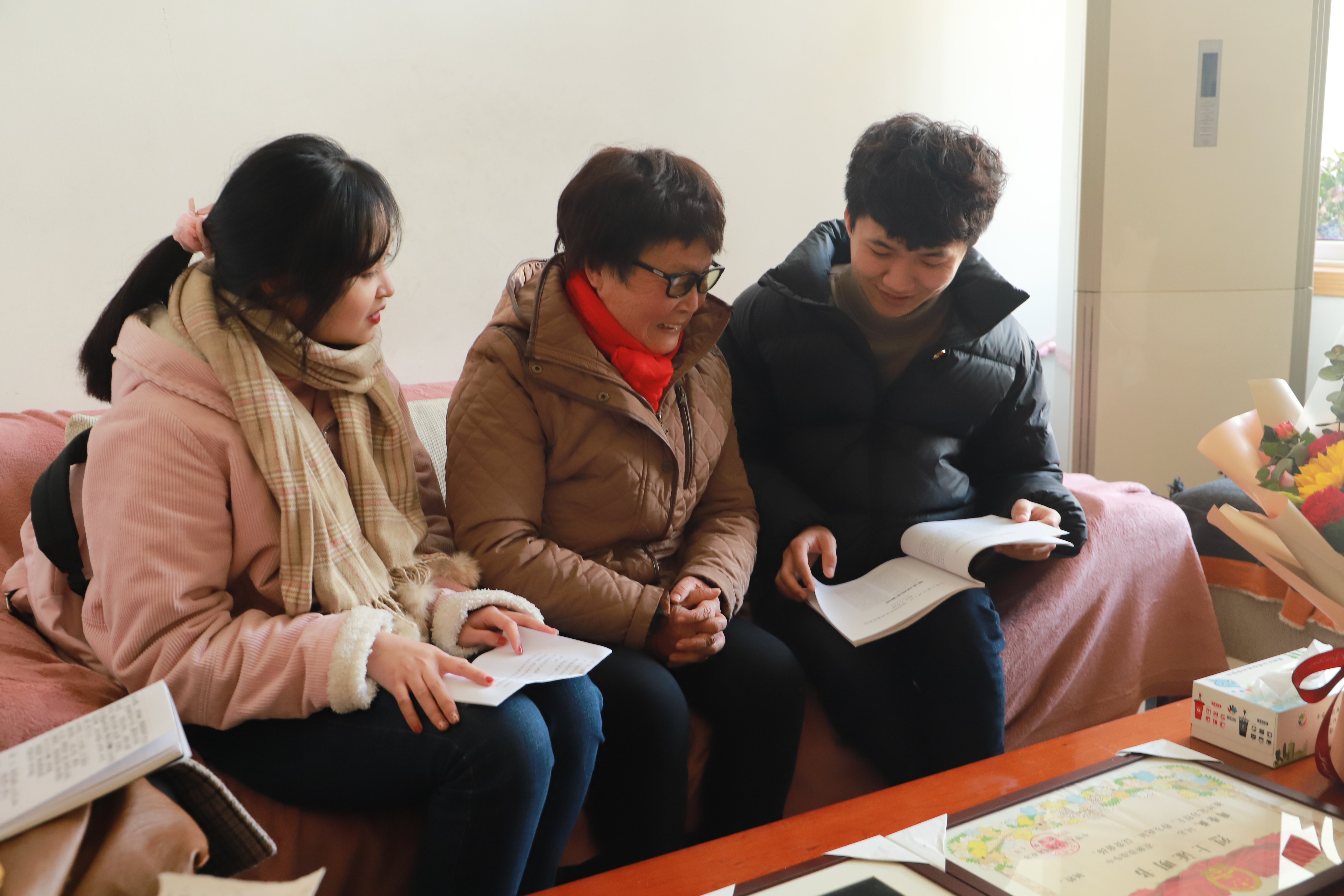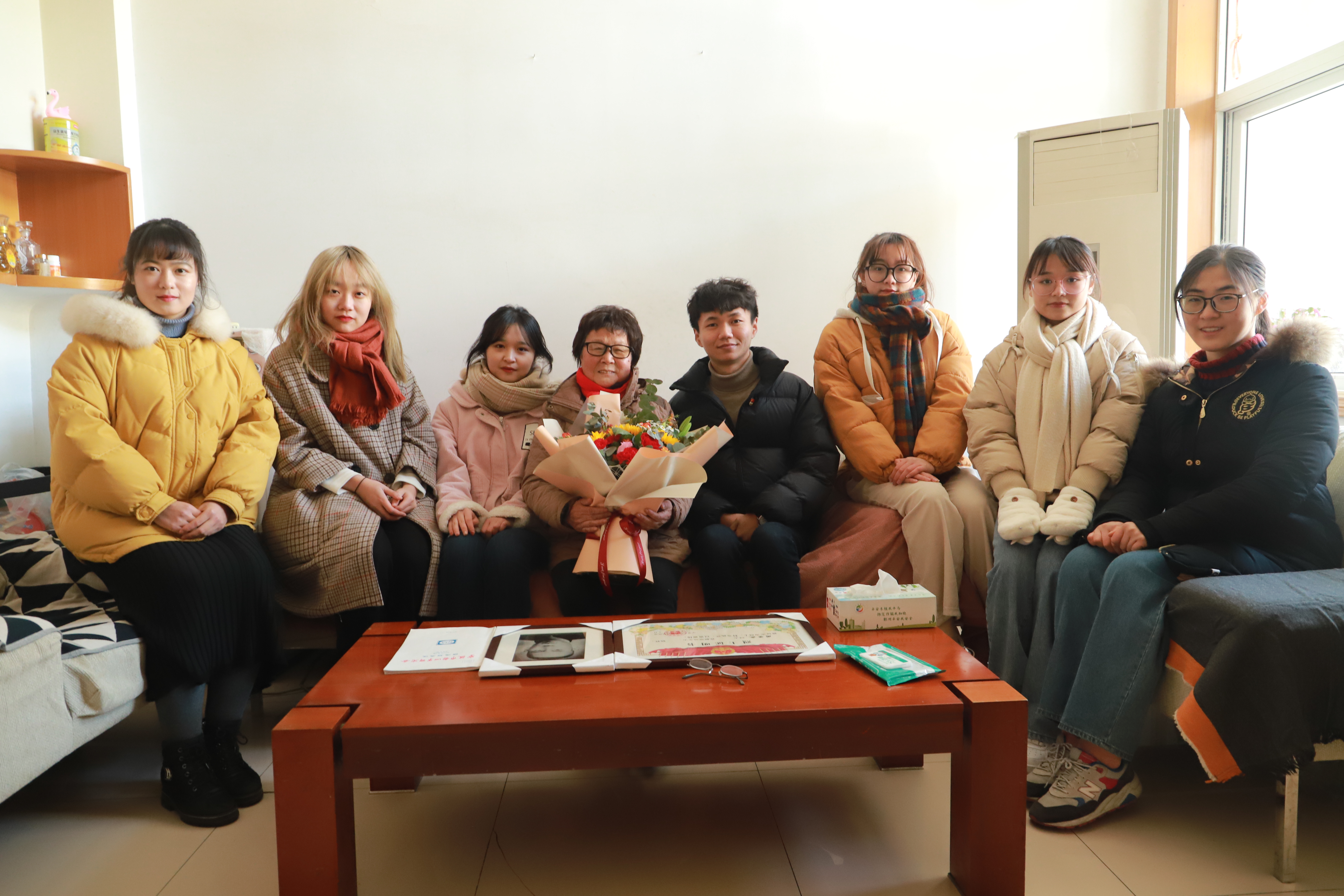 同在1月9日下午,辅导员丁六申带领6位同学前往宁波市鄞州区古讲堂巷慰问采访烈士子女、退休干部周慧萍同志。周慧萍同志年逾古稀但是精神抖擞。她的父亲周荣威同志于1946年在苏北宿北泥沟围残敌军坦克纵队中不幸中弹身亡,生前曾参与过十几次战役,多次在部队任职。周慧萍同志一直将父亲视作英雄,曾作为唯一的女工程师为宁波有线电视事业奋斗多年,以实际行动继承父亲报效祖国的遗志,并在退休之后又加入新四军历史研究会宣教组讲述革命故事,弘扬先烈精神。在座的师生无不震撼于周荣威同志奋勇杀敌的视死如归气概,并敬佩周慧萍同志活到老学到老的精神。