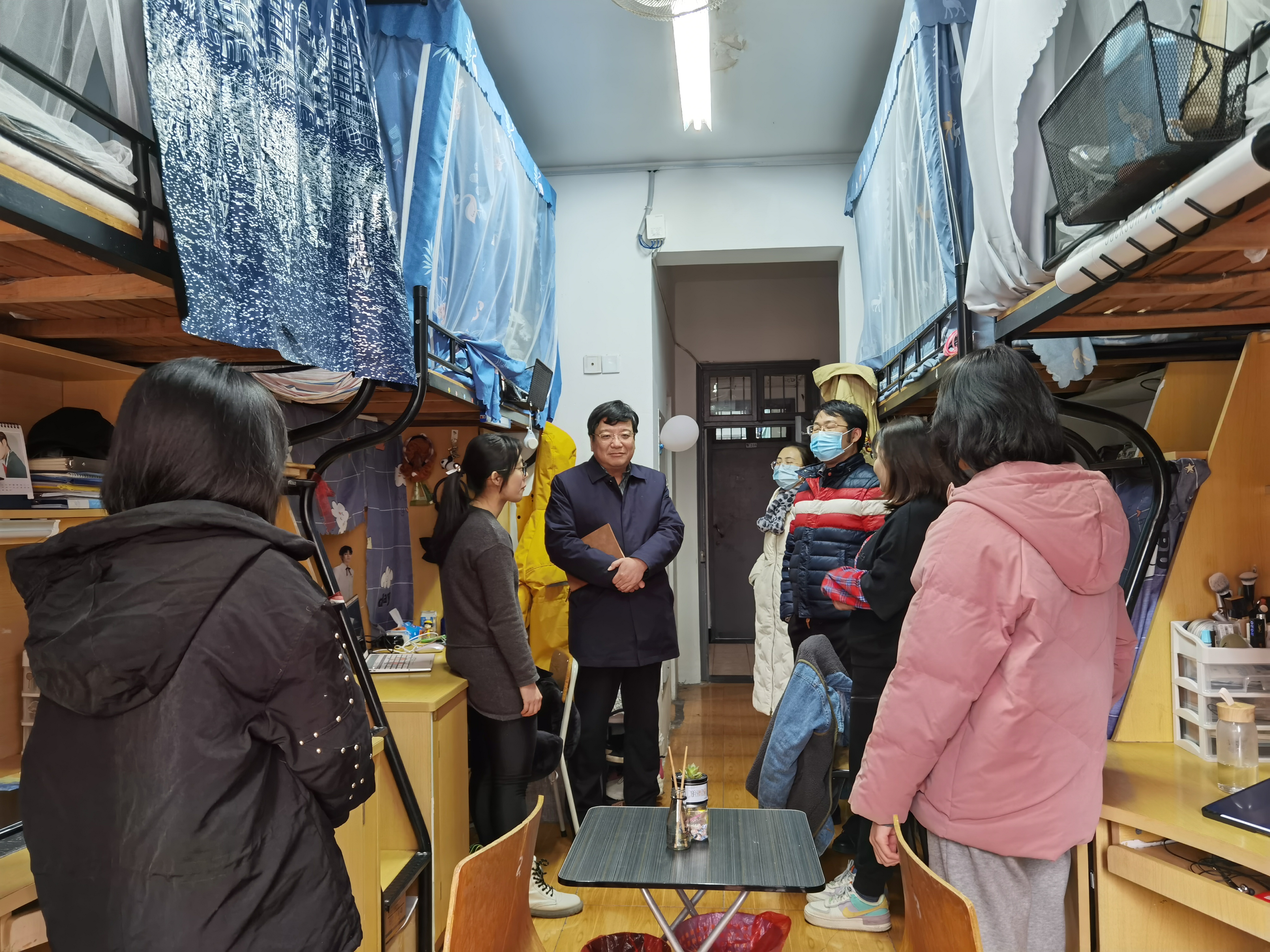 黄光杰一行人在寝室里与同学们亲切交谈,特别关心大家的学业、专业发展、生活问题等与学生息息相关的内容。在10幢209寝室,黄光杰书记询问了四名同学的期末备考情况,以分享自己的学习经历与体悟引发了同学们深深的共鸣,勉励大家在学业的关键阶段做好人生规划、树立长远的目标,还重点叮嘱同学们要注意疫情防控。17幢120寝室的四名毕业生同学有着法考、考公、考研等不同的经历,黄光杰书记表达了祝福并逐一给予了相应的建议。“大家要调整好心态,在遇到困惑与难题时可以及时与我沟通交流,平常也可以相约餐叙。” 一番话,拉近了师生间的距离,寝室中传出阵阵欢笑声。