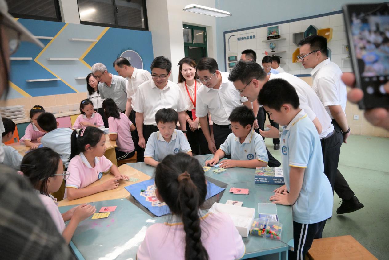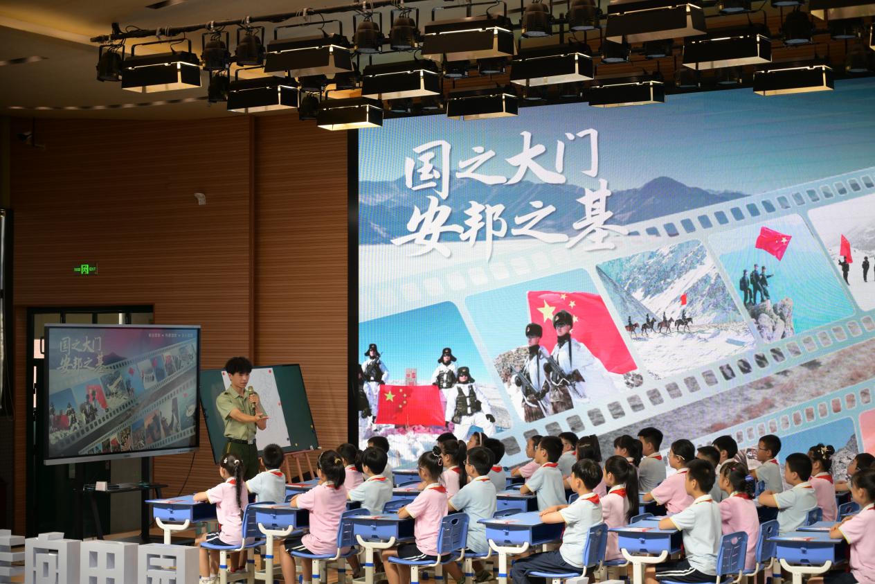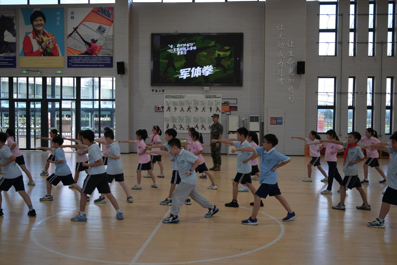 经验交流会结束后,与会嘉宾走进云龙镇甲南小学,现场观摩了由退役军人大学生黄森浩作为教官的军体拳课程,退役军人大学生杨开然主讲的《从汉字“国”里看戍边》国防教育课,以及原创国防主题桌游教学展示,亲身感受国防教育趣味性与知识性相融合的实践成果。作为甲南小学的长期合作项目,“哇,我们的国防”持续助力校园国防文化建设,项目组成员为学校精心设计国防角、绘制国防主题墙绘,不断营造浓厚的校园国防育人氛围。
