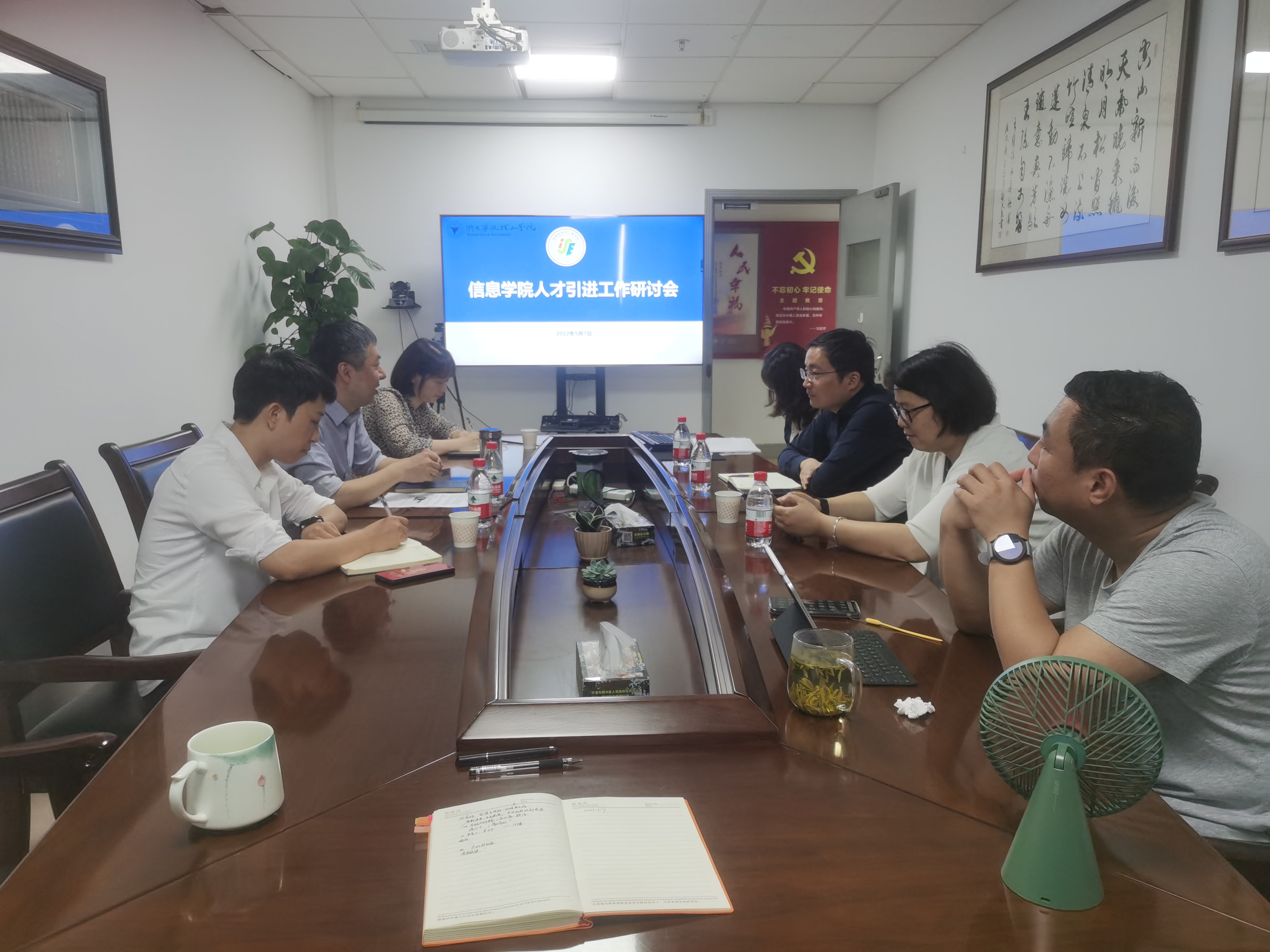5月7日上午,信息学院邀请宁波正好人才科技集团有限公司CEO李貌,人力资源部余琴到访学院共同研讨人才引进工作事宜。学院党委副书记郑毅、副院长陶吉利、副院长裘君,信电系主任蔡卫明、党政办主任杜明珠和人事秘书周步一同参会。