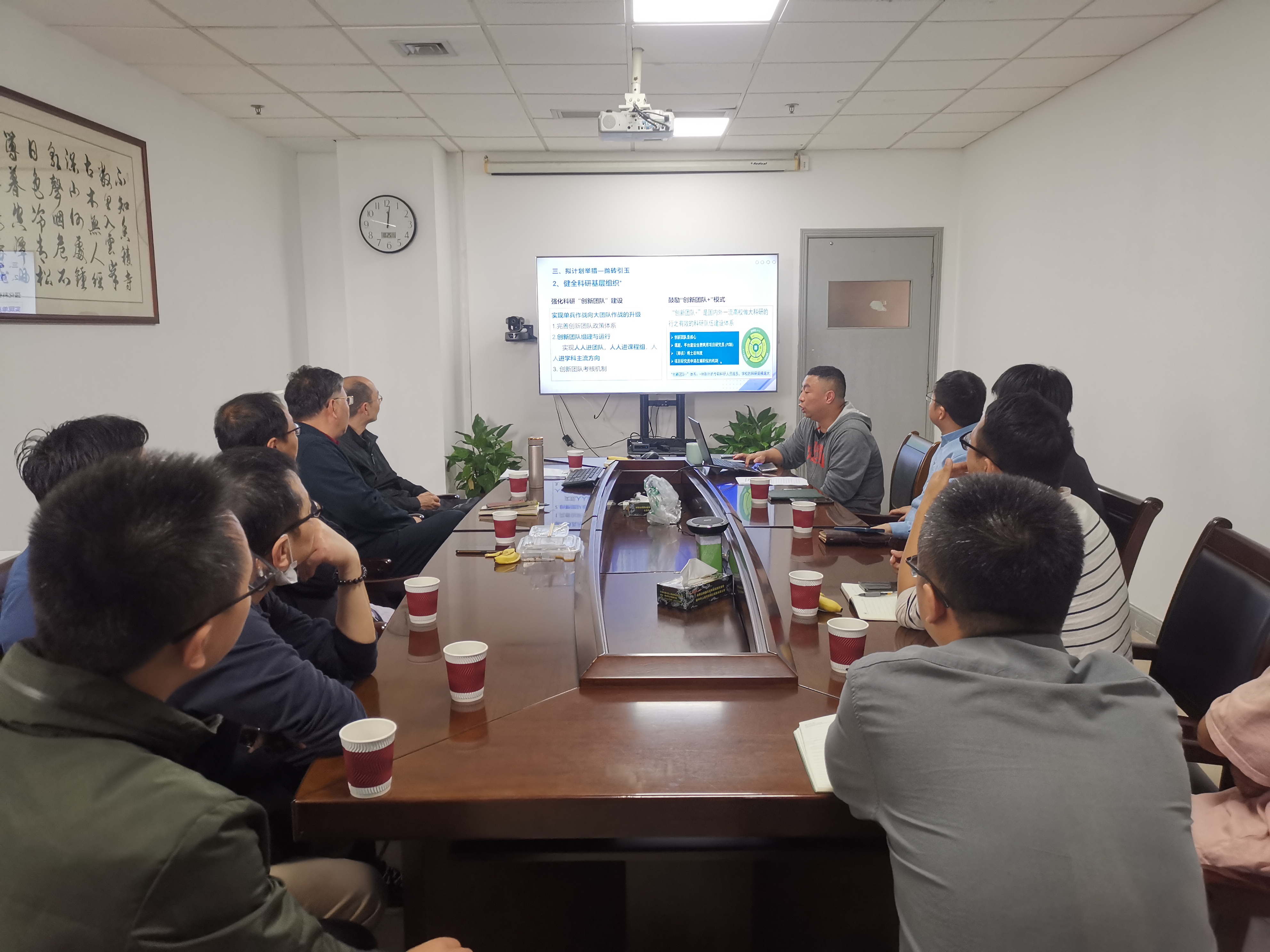 会上,裘君就学校科研处提出的“做有组织的科研”进行阐释并动员学院各所系负责人围绕未来发展方向进一步凝练学科方向开展有组织的科研工作。他首先介绍了科研处会议精神,要做有组织的科研需要搞清楚的问题包括“组织啥?谁组织?组织谁?”,应由单兵作战向大团队作战升级,要求人人进团队,人人进课程组,人人进学科主流方向。同时,他介绍了目前国家对科技发展新要求及现状、对“做有组织的科研”的理解和拟计划举措。随后,学院各所系负责人围绕有组织的科研要求就现有的科研队伍和学科方向进行梳理回顾总结并展开头脑风暴,积极寻求契合点,进一步结合宁波地方需求和产业特点,持续做好优势特色科研工作,持续培育创新团队和创新成果。