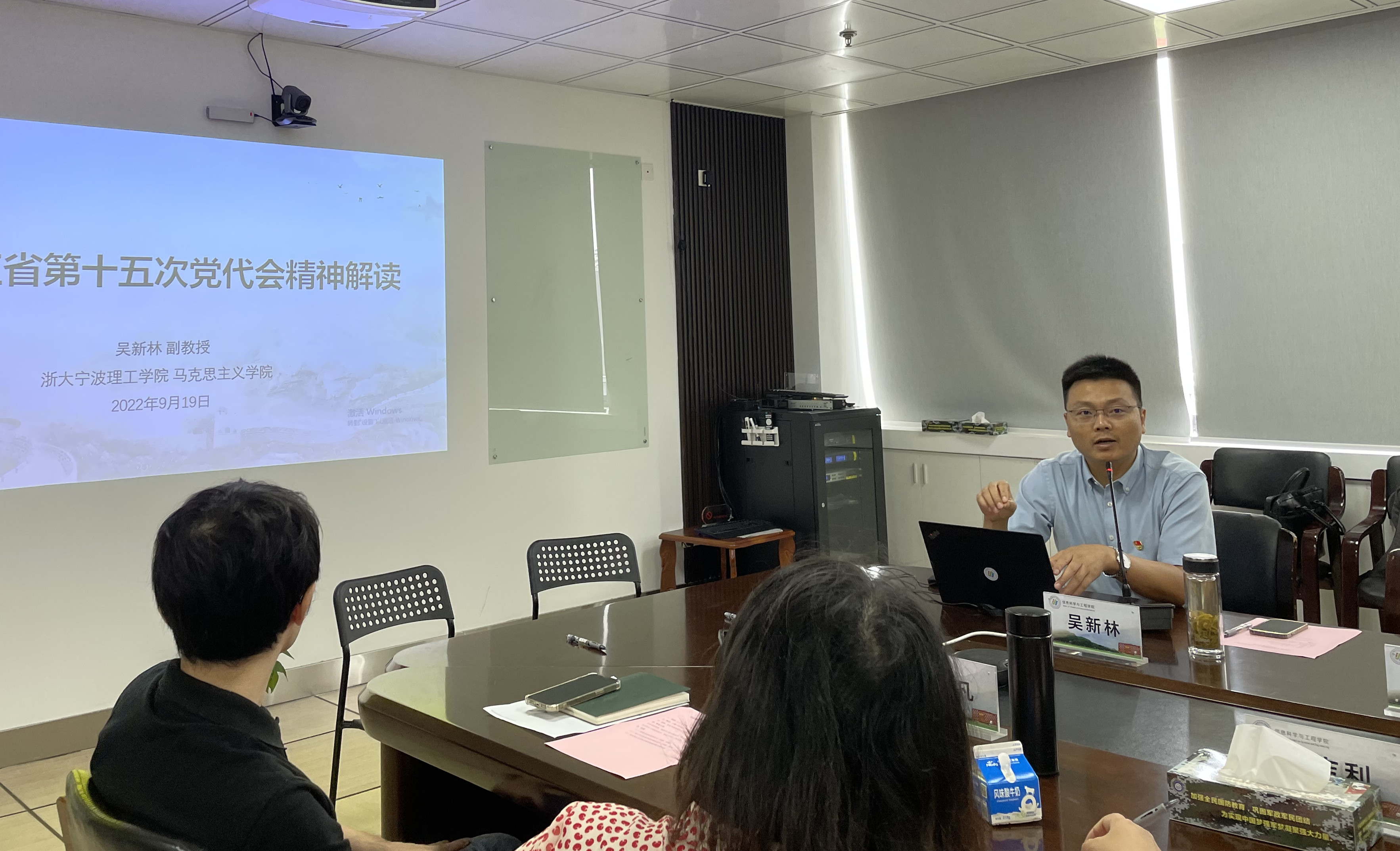 9月19日信息学院理论中心组召开省第十五次党代会专题学习会,特邀马克思主义学院副教授吴新林做专题报告,学院班子成员、党委委员,全体支部书记参与了此次学习会。