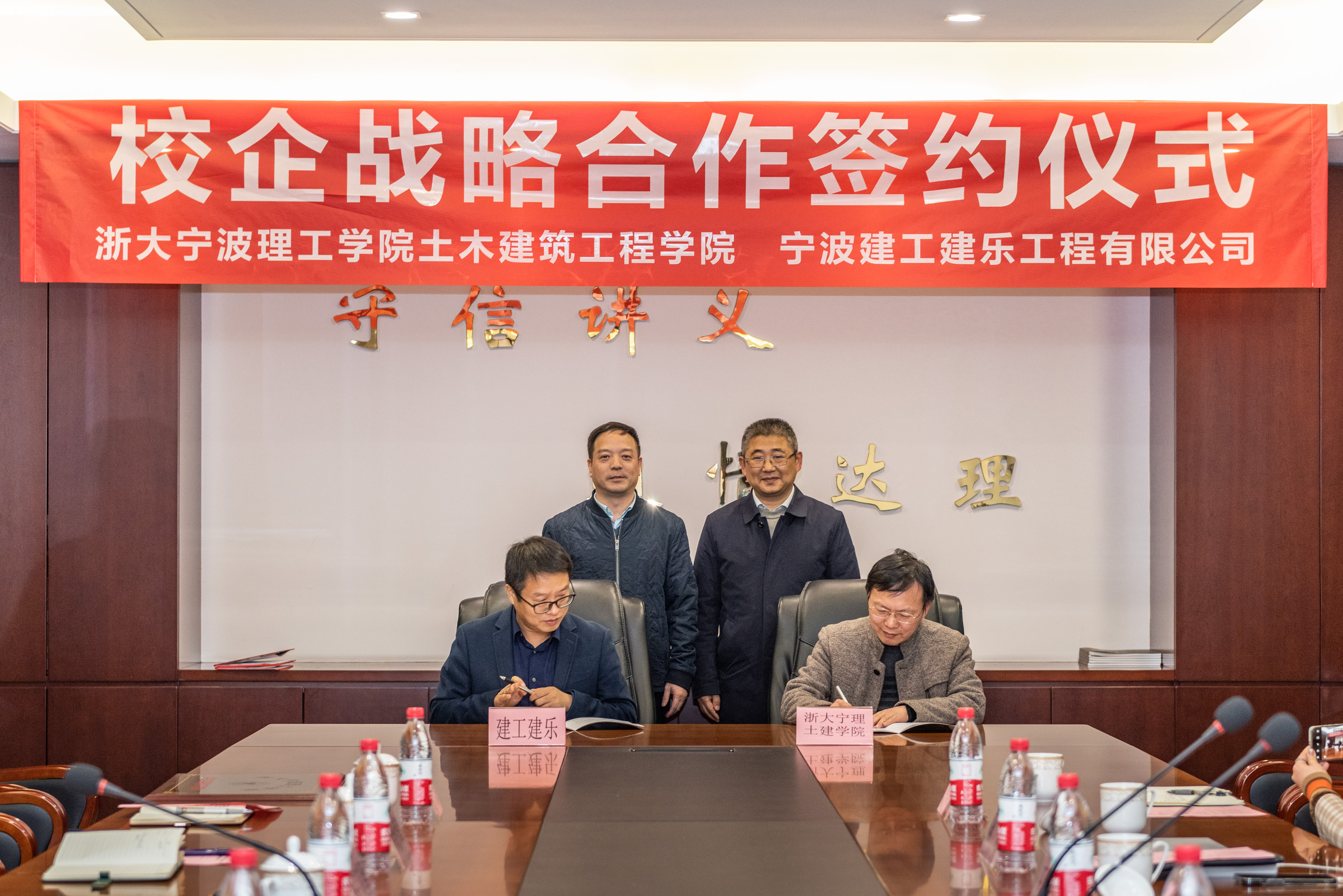 12月7日下午,土建学院党委书记王银辉一行赴宁波市建工建乐工程有限公司开展交流,签约校企战略合作协议、党建“砼盟”共建协议。宁波建乐董事长吴文奎,副总经理余劲草、毛乾雁,党总支副书记许必强,总工程师刘用海,财务总监潘余波、办公室主任助理罗琳群出席签约仪式。