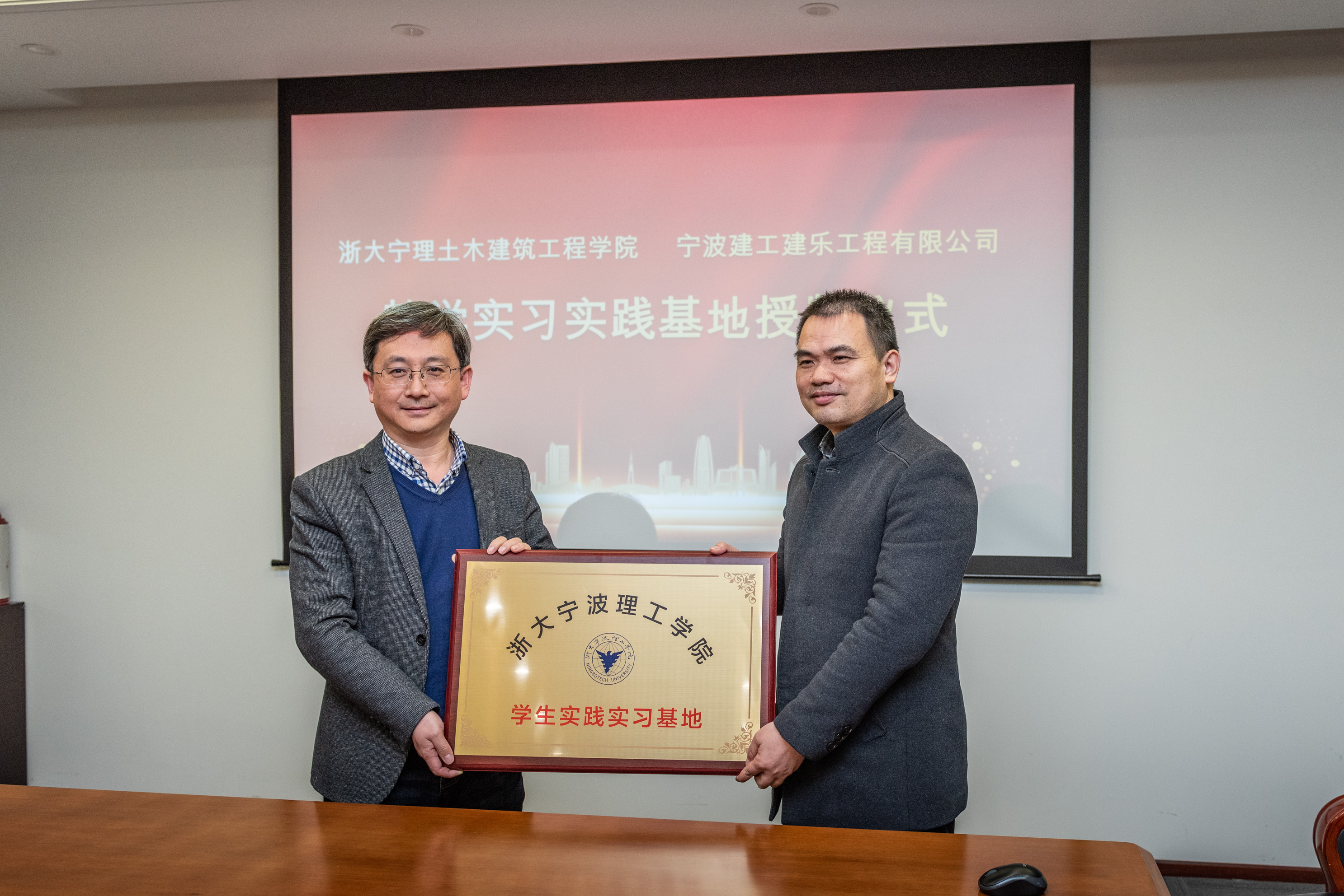 会上,王银辉与宁波建乐董事长吴文奎签约校企战略合作协议书。学院党委委员、教工第二党支部书记方鹏飞与宁波建乐公司副总经理余劲草签约党建“砼盟”共建协议。学院副院长王文军代表土建学院向公司总工程师刘用海授学生实践实习基地铜牌。根据合作协议,双方将组织开展多层次的互联共建,达到产教融合共提升目的。