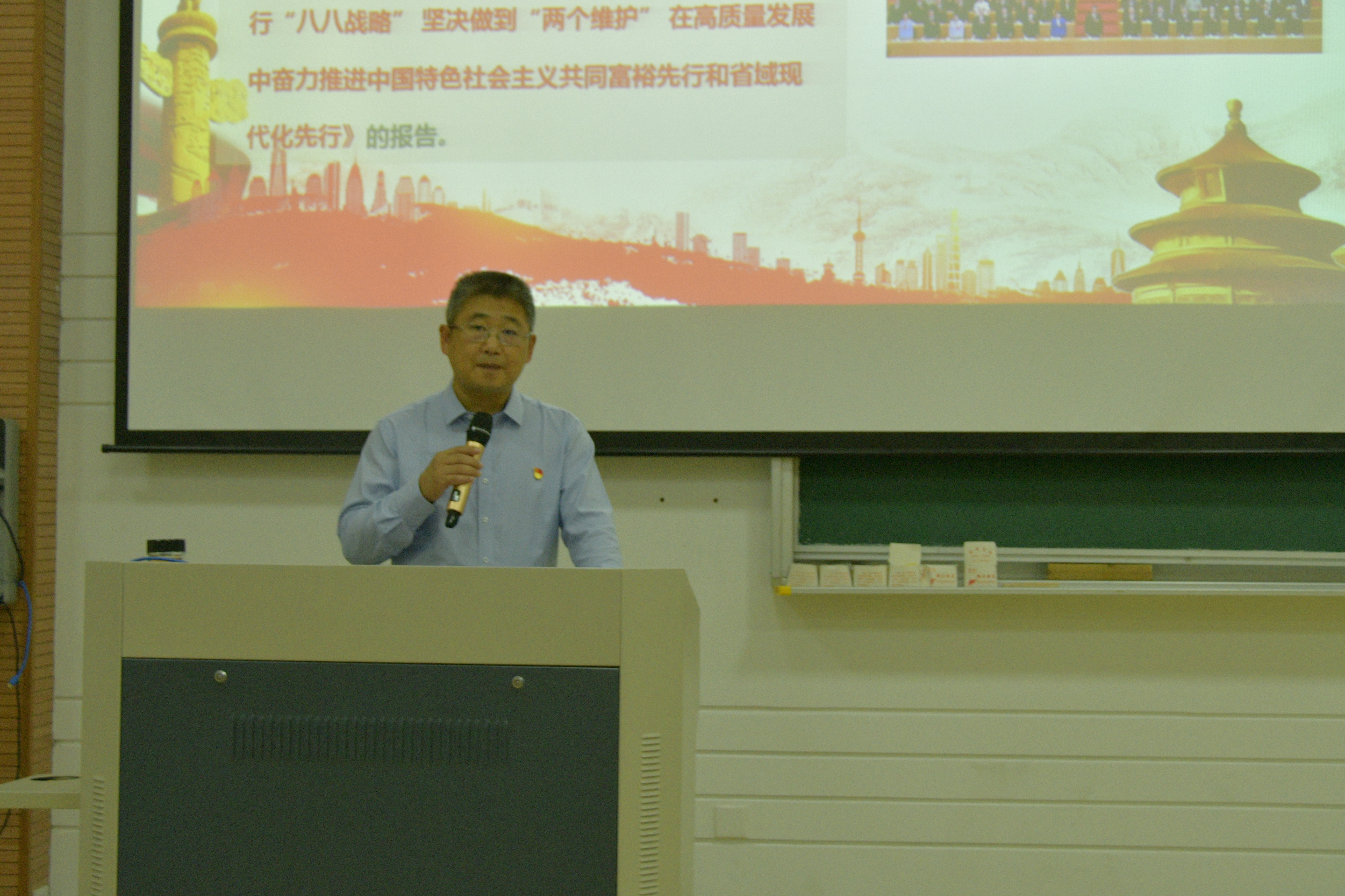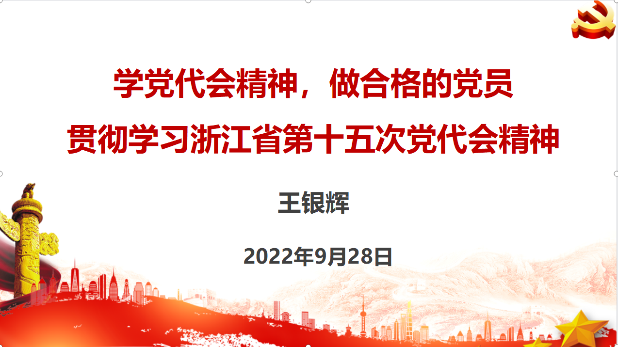 初心似锦照红船,之江潮起再扬帆。自浙江省第十五次党代会召开以来,全省上下迅速掀起学习宣传贯彻省党代会精神的热潮。土木建筑工程学院党委认真抓好党代会精神学习部署。9月28日晚,土建学院党委书记王银辉以“学党代会精神,争做合格党员”为主题,为学生讲授专题党课。