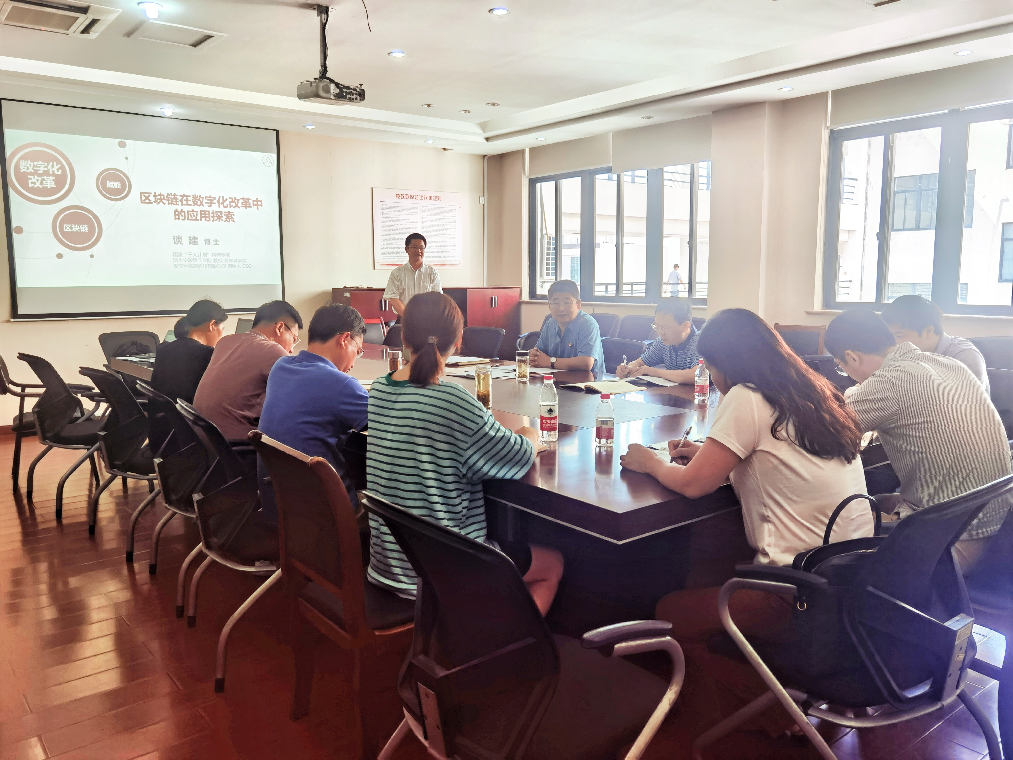 6月29日上午,土建学院党委理论学习中心组围绕“区块链赋能智能建造”,举行数字化改革专业能力提升报告会。邀请学校“智慧化港口与服务”学科群首席科学家谈建教授作专题辅导报告。会议由学院党委书记王银辉主持,学院党委理论学习中心组成员、各党支部书记、研究所负责人等参加了学习会。