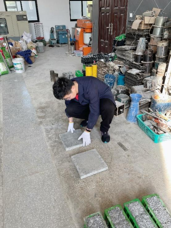 (图为李王鑫同学制备再生骨料清水混凝土)