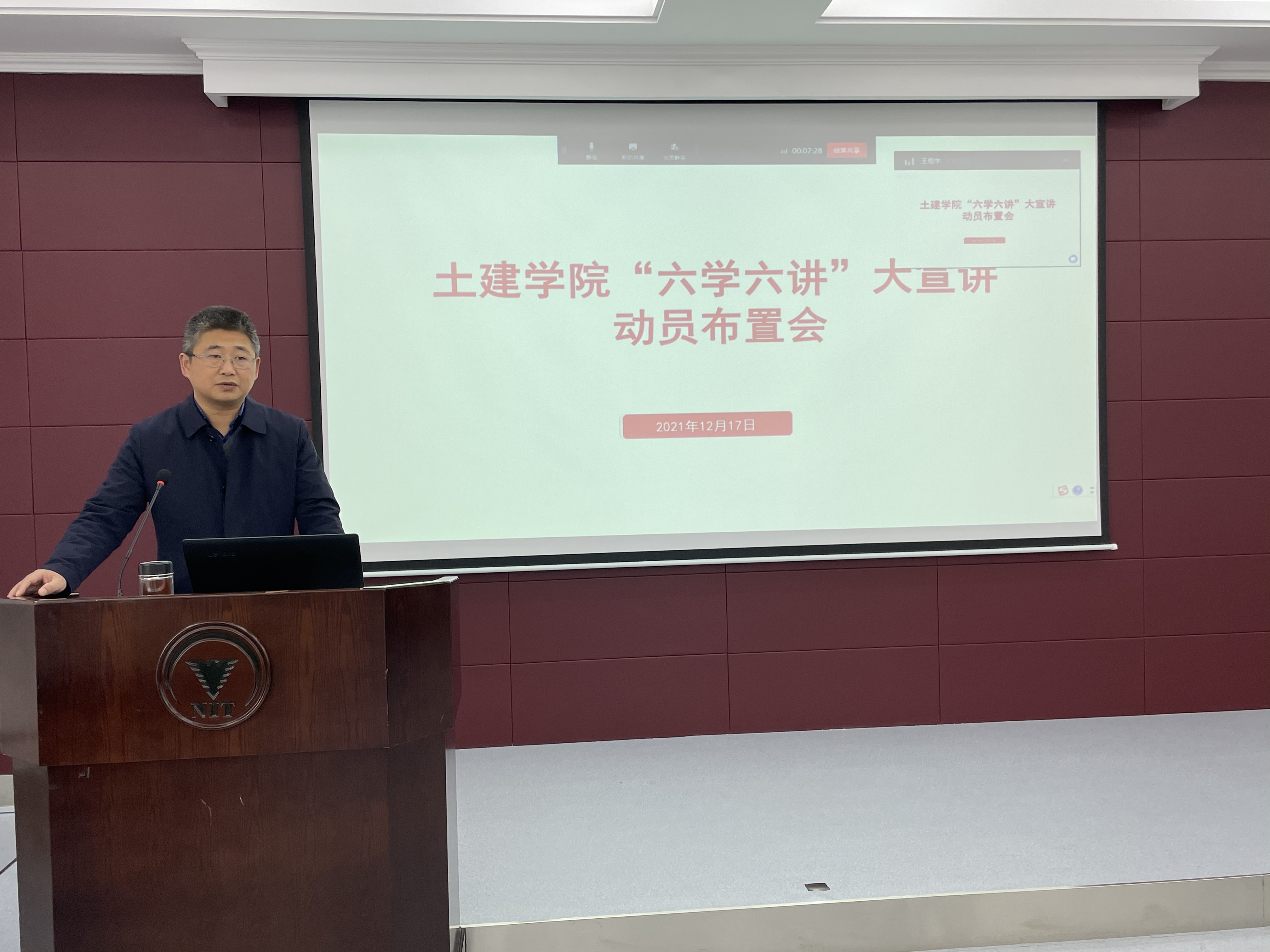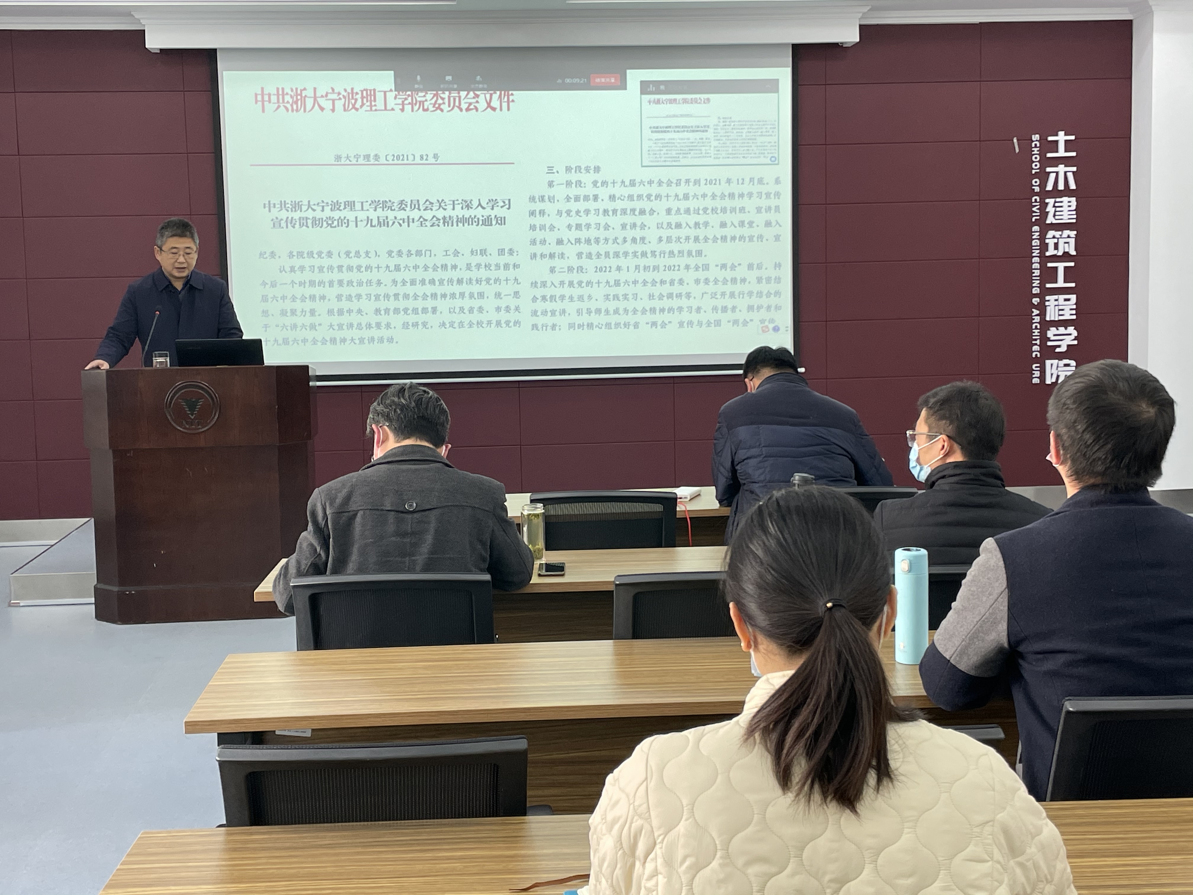 根据《中共浙大宁波理工学院委员会关于深入学习宣传贯彻党的十九届六中全会精神的通知》要求,12月17日下午,土建学院在SA305会议室召开了“六学六讲”大宣讲动员布置会。土建学院全体教师通过线上线下结合的形式参加了会议。