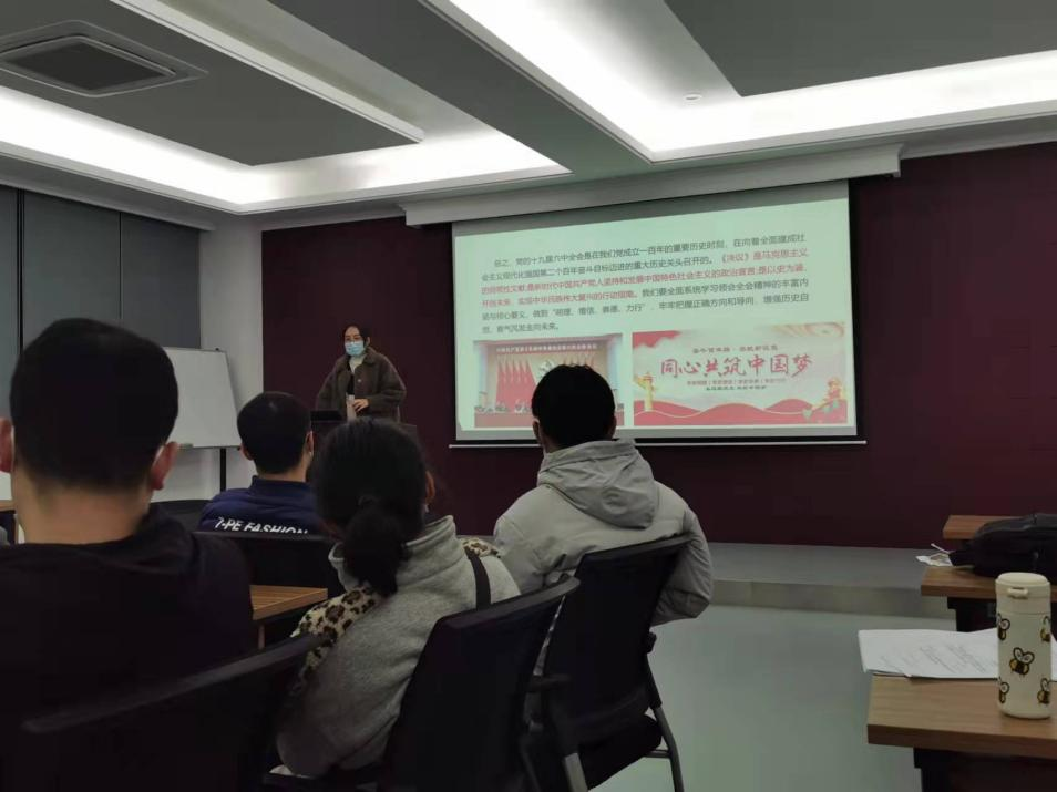 2021年12月8日下午,土建学院土木党支部全体党员开展党的十九届六中全会精神宣讲活动,支部书记李扬老师主讲。