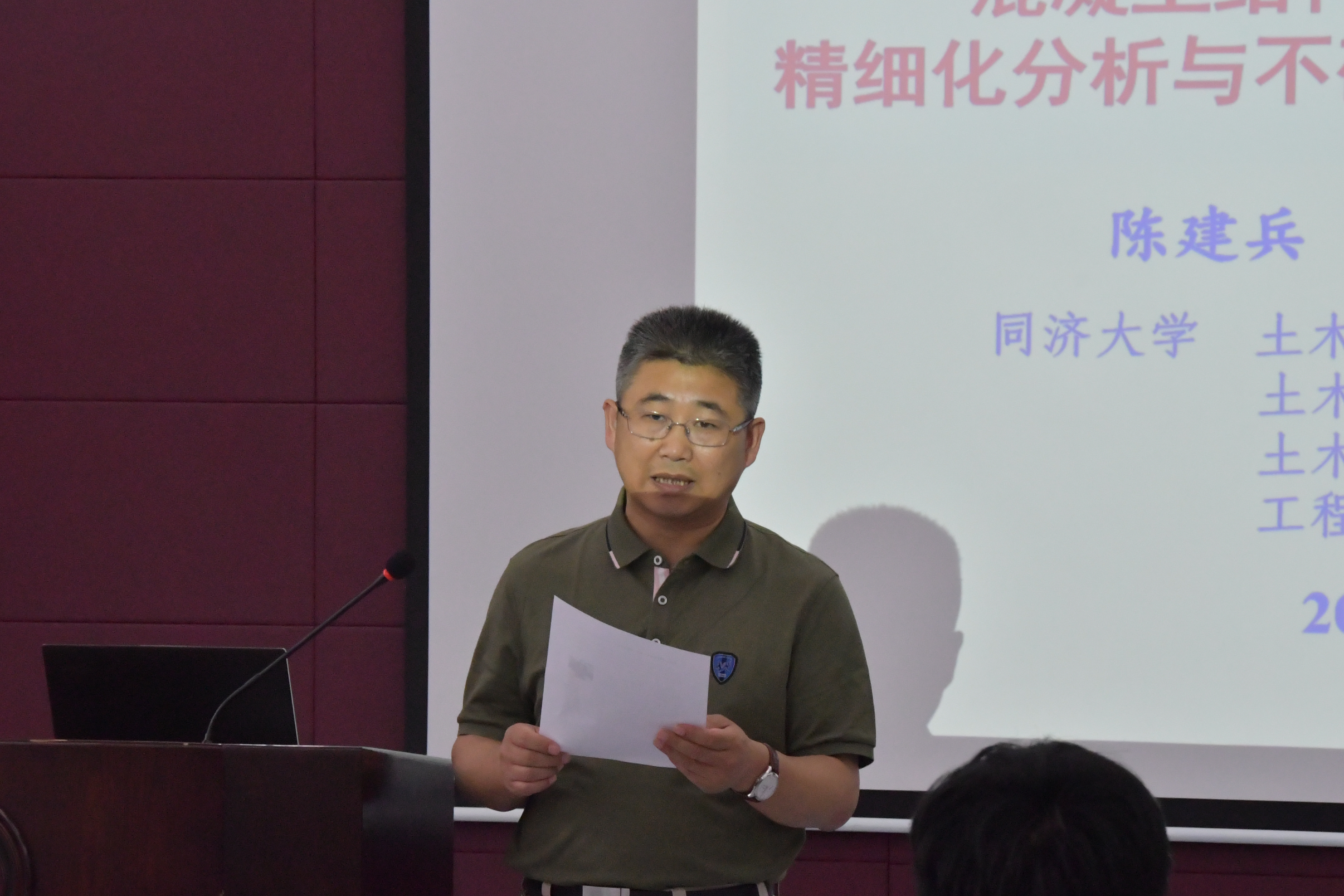 陈建兵从“结构非线性精细化分析是不确定性量化与结构可靠度分析的物理-力学基础;不确定性量化是数据-信息基础,结构可靠度分析与设计是理性决策工具;合理的混凝土本构模型在结构非线性精细化分析中具有基础性地位;混凝土本构模型的不确定性与空间变异性对结构非线性性能具有不可忽视的重要影响”等方面进行分析讲解。会后,现场师生踊跃提问,陈建兵耐心解答,双方进行了深入友好的交流,现场气氛十分活跃。