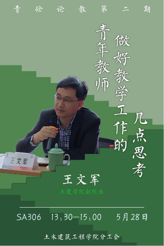 2021年5月28日,青砼论教第二期活动如期开展,本期邀请浙大宁波理工学院土建学院副院长王文军老师分享关于青年教师做好教学工作的几点思考。
