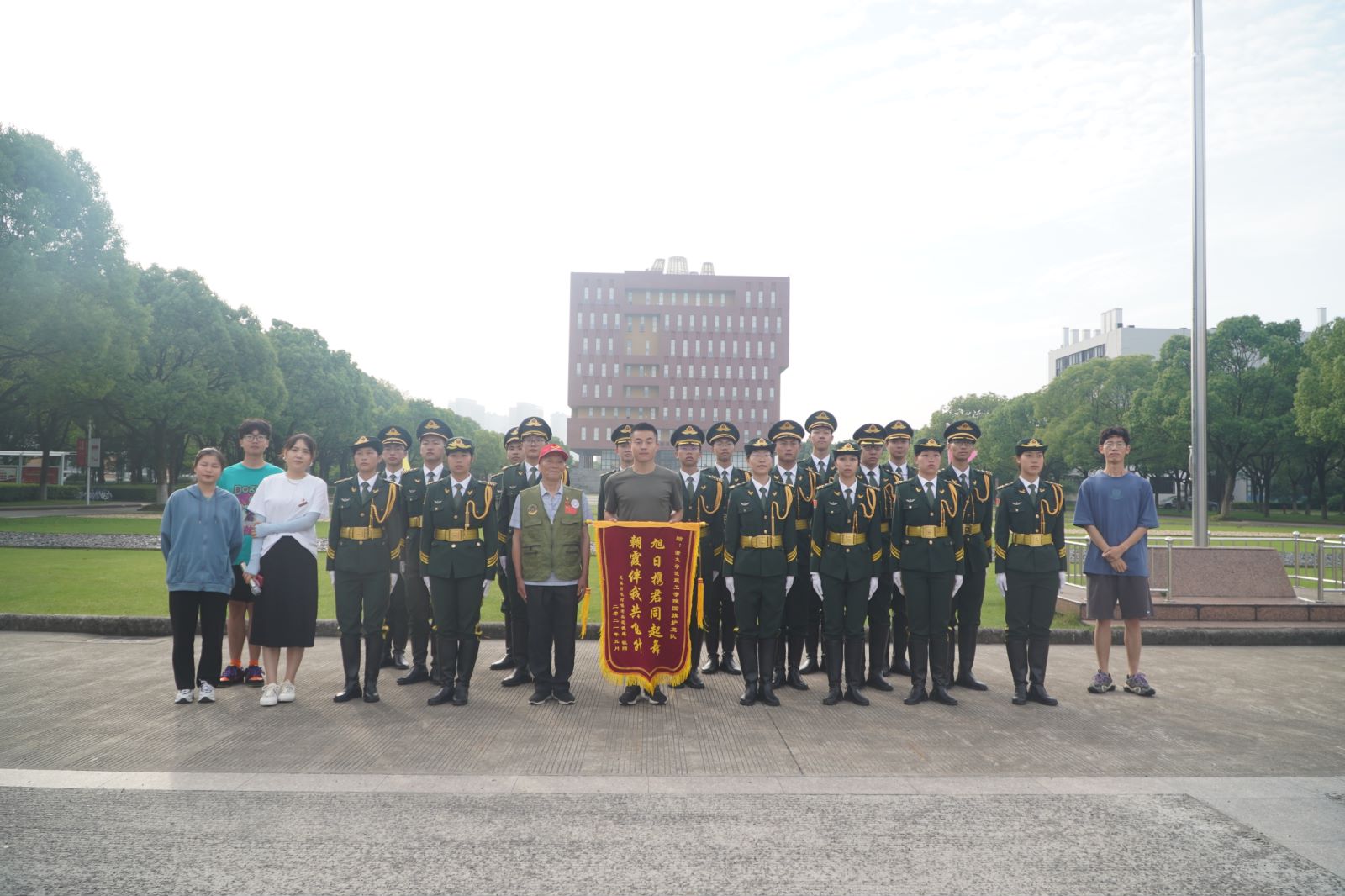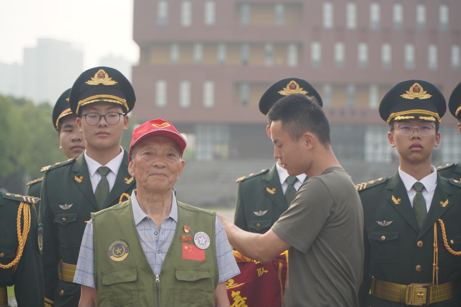 参加升旗仪式的还有一位特殊的嘉宾,他是范沛先,是抗美援朝老兵范德康老人的儿子,从2000年期,九旬老人范德康已经坚持在家中院子里升旗20年。范沛先也是一名军人,1969年入伍,当兵6年,他今天专门来参加升旗仪式,范老跟同学们说到:“你们是未来的希望,是祖国的明天,希望同学们好好学习,担负起建设祖国的重任。”简单的几句话让在场的同学们心潮澎湃、振聋发聩。