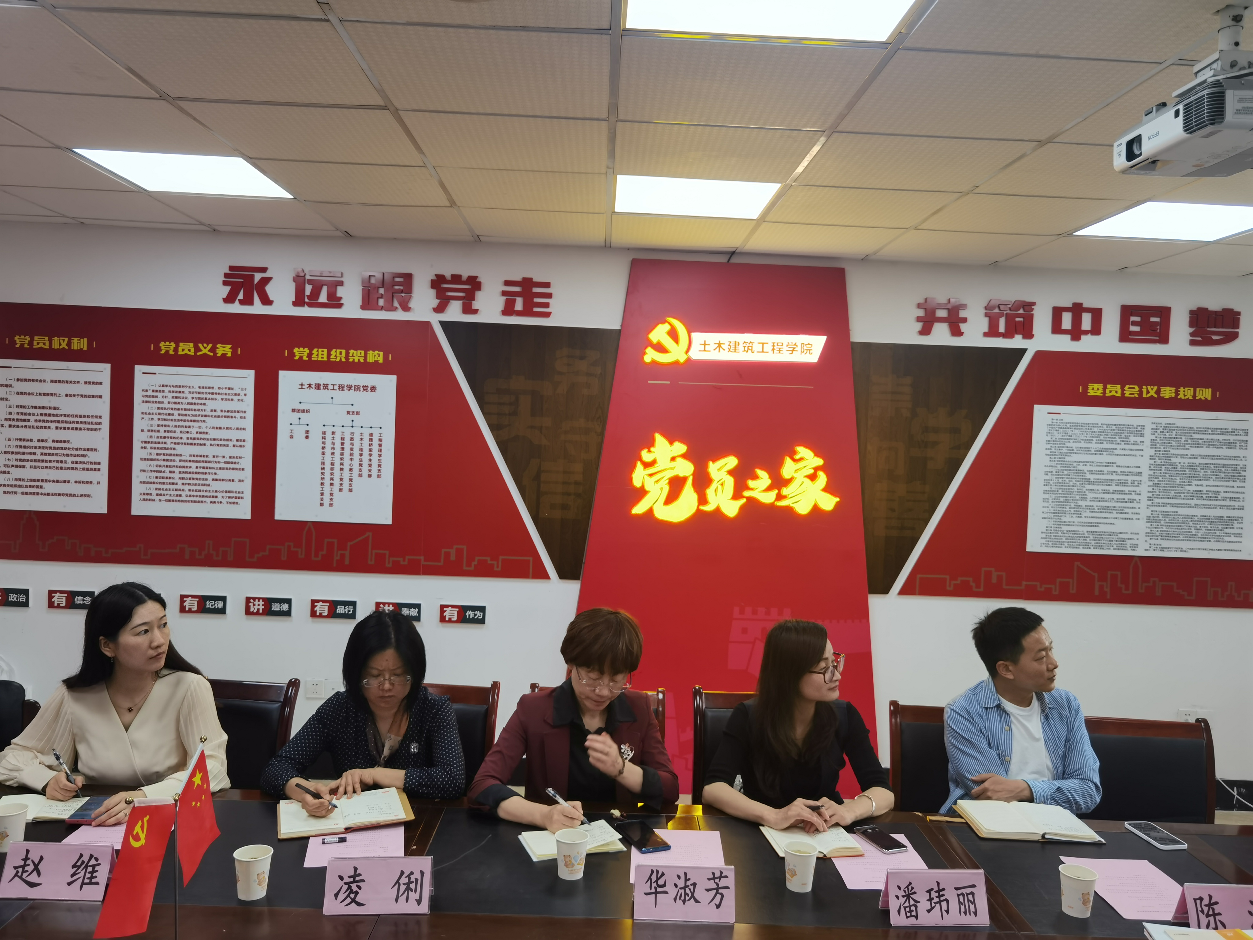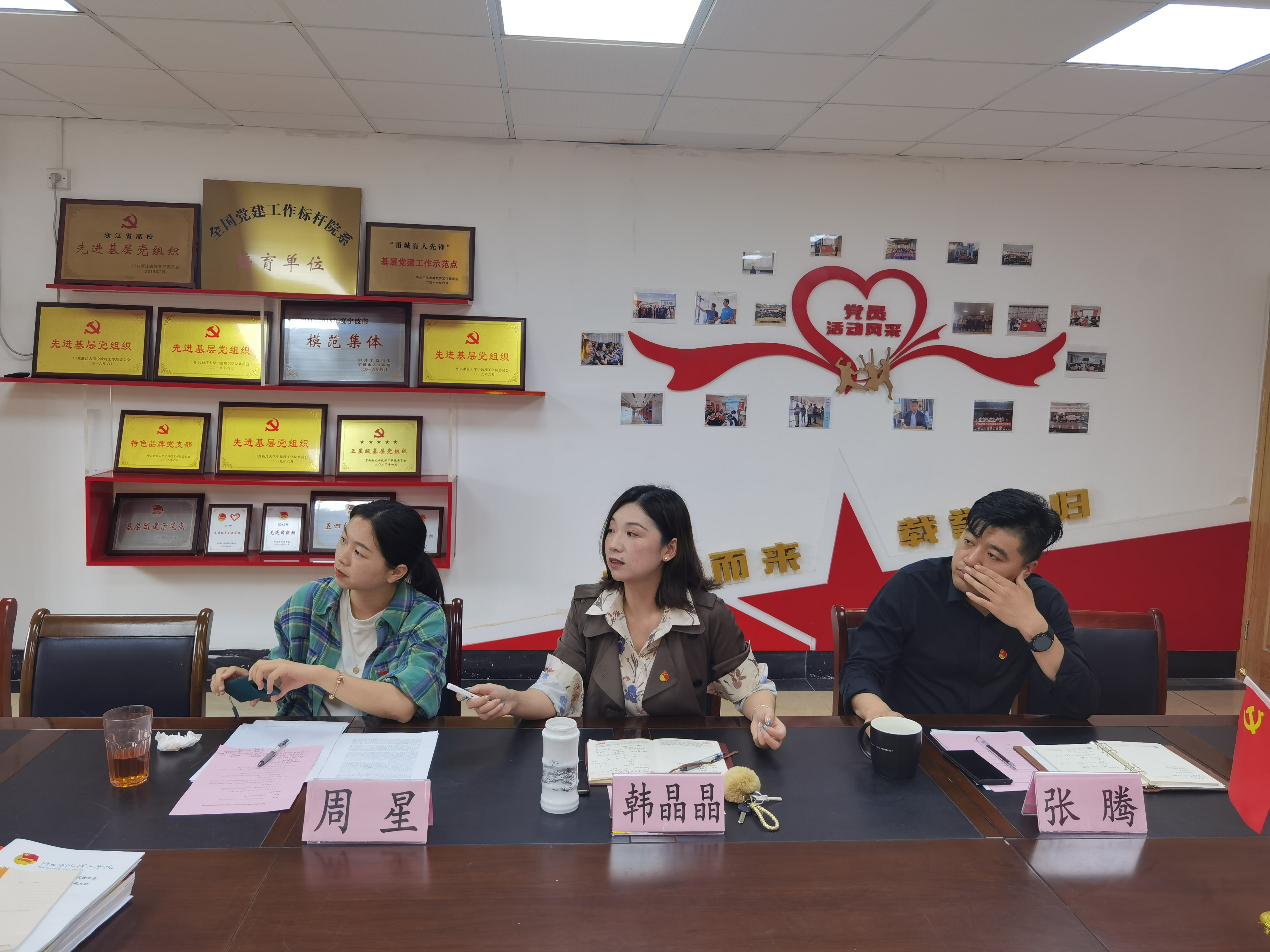 大家共同观看了由土木建筑工程学院出品的标杆院系汇报视频。韩晶晶以“打造党建砼文化,共筑发展同心圆”为主题,系统的将党建标杆院系的建设过程、重要支撑保障、创新思路举措、成果简介等进行了详细地梳理和总结。双方就党建标杆建设定位、特色、凝练等进行了深入友好地交流。信息与电气工程学院党委副书记潘玮丽还特别介绍了该学院“M134”的思政育人模式,给我们学院的党建和思政工作提供了充分的借鉴和启示。韩晶晶等带领对方学院老师们参观了学院文化大厅、初心工作室、“甬尚雷锋”书记工作室,向对方一一介绍了阵地建设内容。