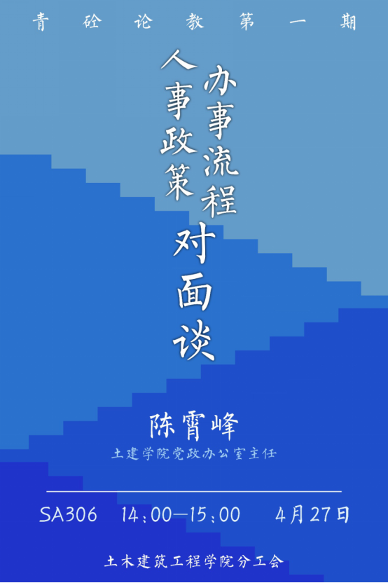 为进一步加强青年教师之间的沟通,使其更好融入学院环境、加快成长速度,2021年4月27日下午,土建学院分工会组织了“青砼论教”教师成长论坛的第一期活动,学院党委书记王银辉以及学院部分青年教师参加,党委副书记韩晶晶主持,党政办公室主任陈霄峰担任第一期主讲人。