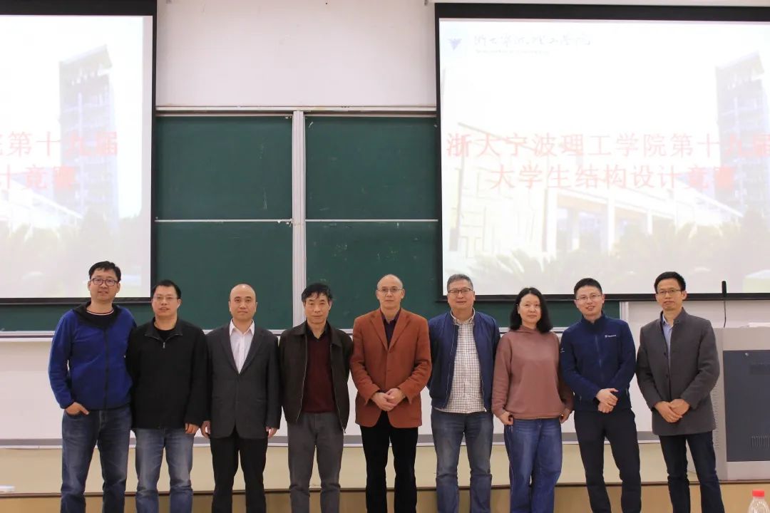 本次结构竞赛受到了各方的大力支持,决赛现场邀请到了浙江核力建筑特种技术有限公司陈湘总工、宁波市建筑设计研究院朱捷总工、宁波工程学院陈跃老师、浙江万里学院管斌君老师、浙江工商职业技术学院徐卫星老师,浙大宁波理工学院土建学院副院长王文军,教师彭卫、王建新、刘玮、王韬、王恒宇和查支祥作为嘉宾评审。