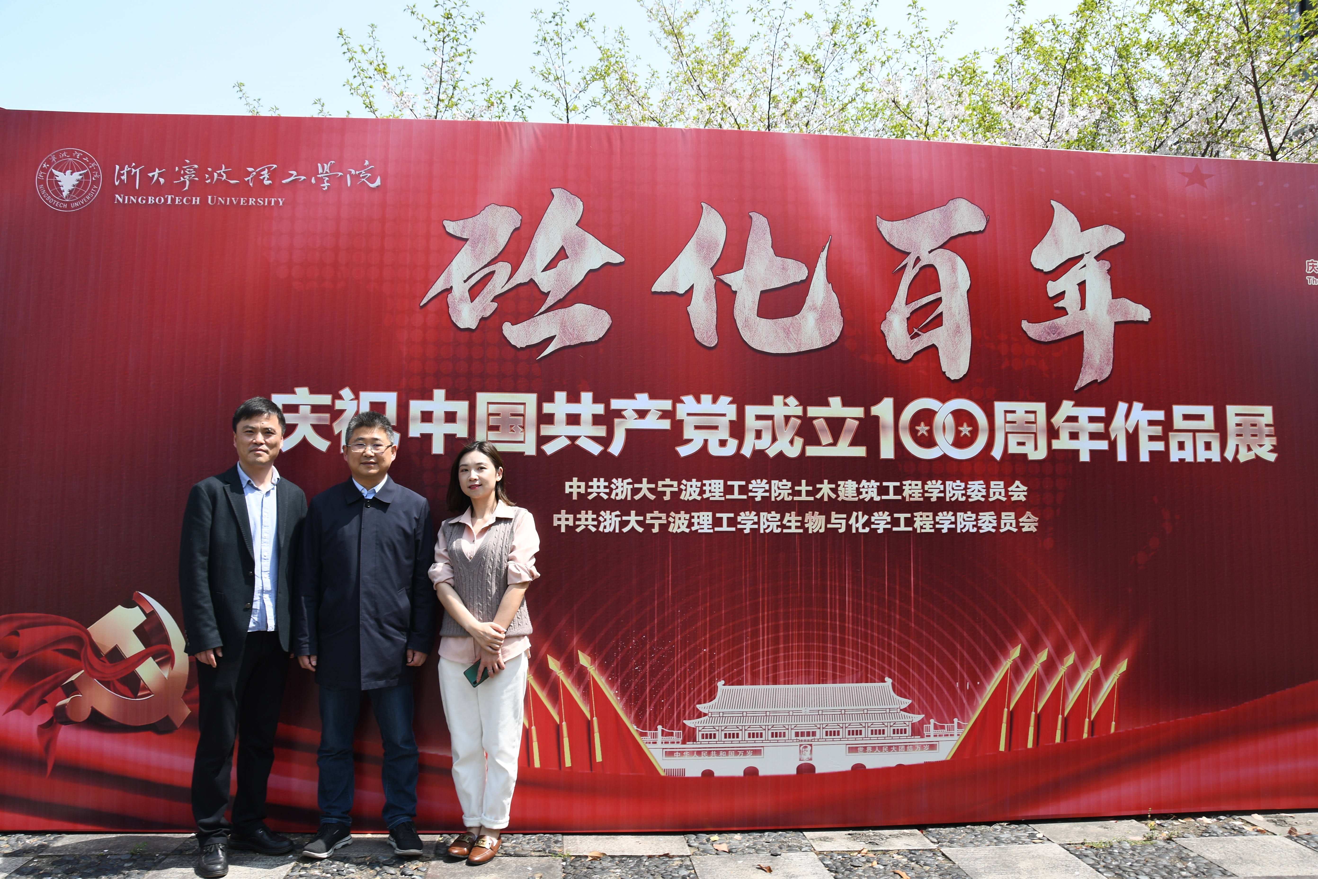 2021年3月29日,浙大宁波理工学院土建学院、生化学院党委联合举办庆祝中国共产党成立100周年作品展。两个学院的党政领导班子和全体师生党员、入党积极分子参观了本次展览。