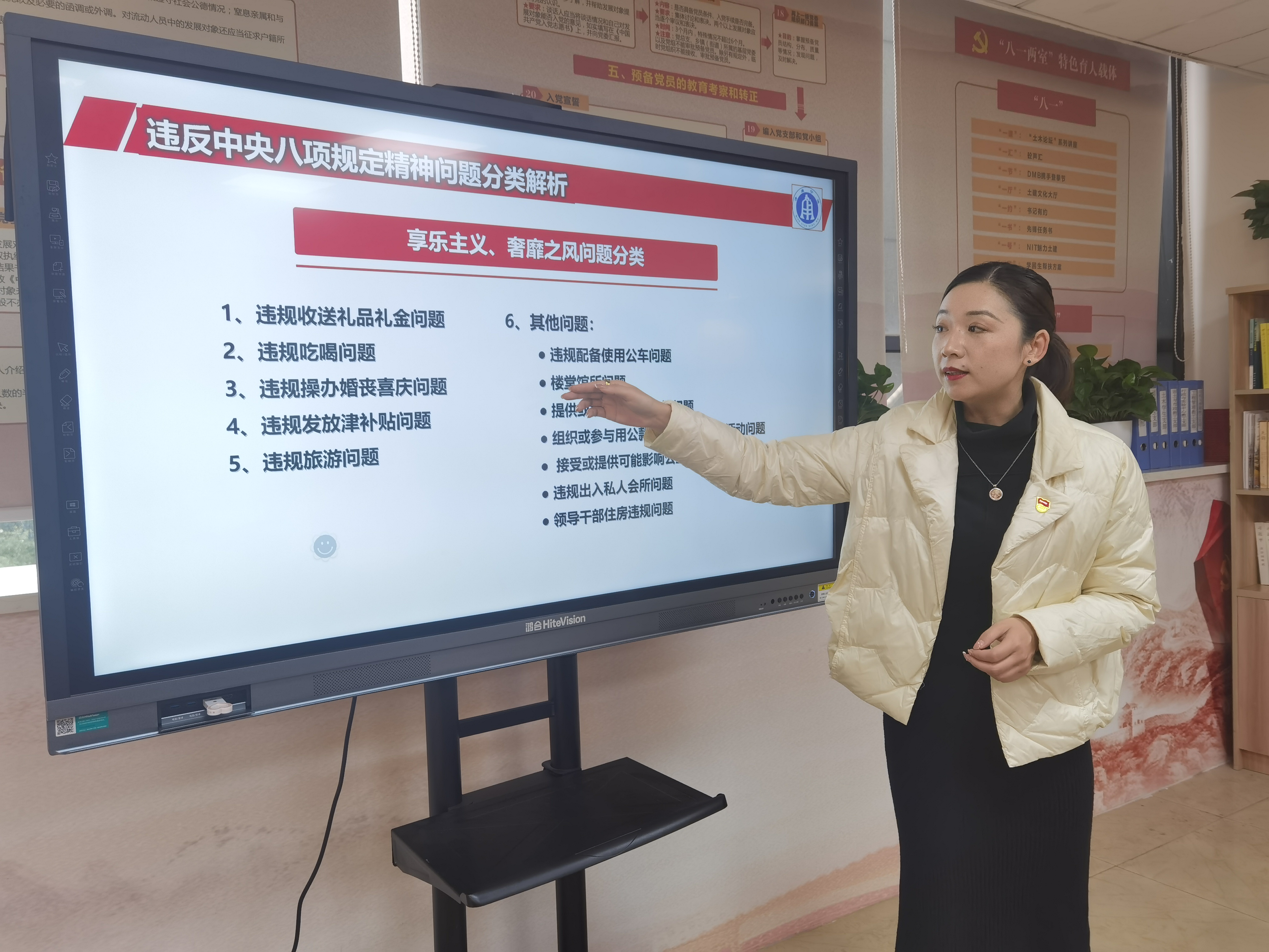 会上,学院党委副书记、纪委书记韩晶晶详细讲解了《落实中央八项规定精神纠治“四风”工作实务》,内容涵盖享乐主义、奢靡之风、形式主义和官僚主义四风问题的分类界定、违反中央八项规定精神的案例分析和需要注意把握的要点。随后,韩晶晶通报了收录在《党员干部违纪违法典型案例警示录》中的几起典型案例和浙江工业大学膜分离与水科学技术中心原主任助理兼办公室主任陈贤鸿的严重违纪违法案例,并对此进行警示教育。