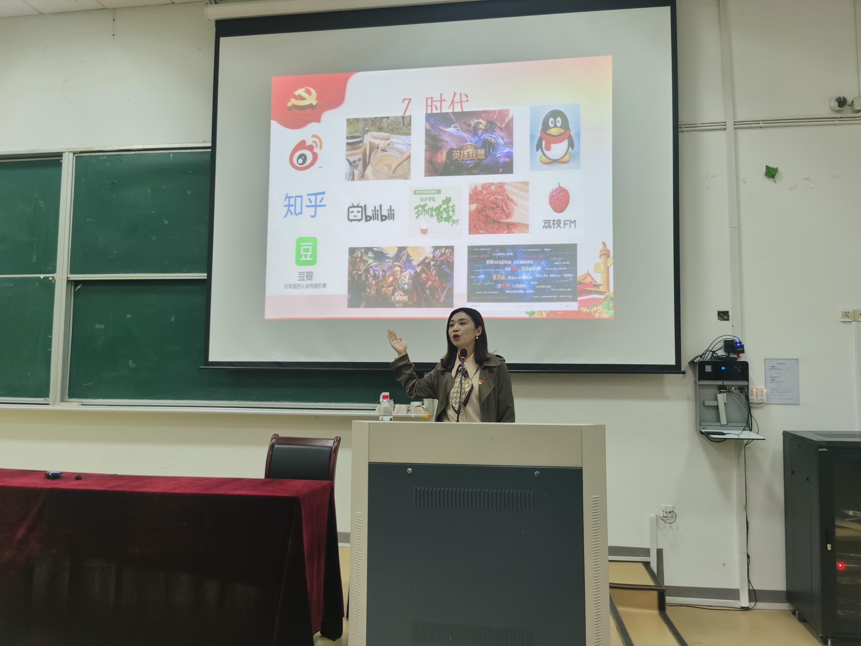 期间,韩晶晶主要从铭记苦难历史、讲好中国故事、勇担复兴使命这三个篇章进行授课。提到优秀校友——高原格桑花洪伟同学,敢吃苦、敢拼搏、敢奋斗的优秀品质,是我们这代大学生应该发扬的精神。在提到00后作为新时代的鼓手时,以今年放弃春节假期坚守在抗疫战场上的00后群体为例子,他们接过历史的“责任棒”,学着曾保护过他们的抗非勇士,勇挑重担、舍生忘死,保卫祖辈用血肉之躯拼搏下来的这篇大好河山。韩晶晶以习近平主席提出的16字要求结尾:劳动、勤俭、感恩、助人、谦让、宽容、自省、自律。